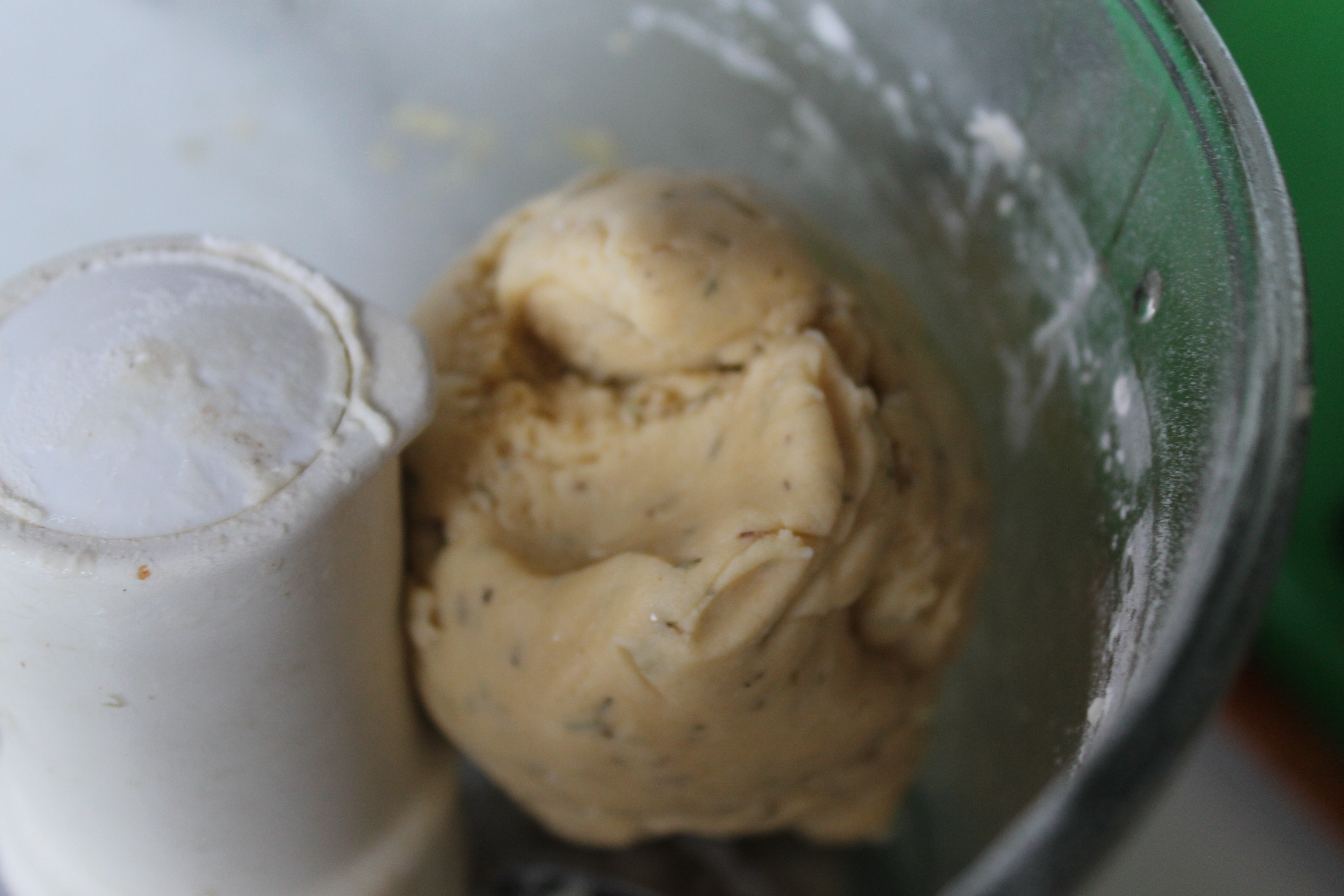 Þá bætti ég við einu eggi og lét vélina ganga þar til deigið hnoðaðist í kúlu. Ef það gerist ekki er það of þurrt og þá má bæta við svolitlu vatni. Ef það er hins vegar of blautt til að hægt sé að fletja það út má bæta við dálitlu hveiti.