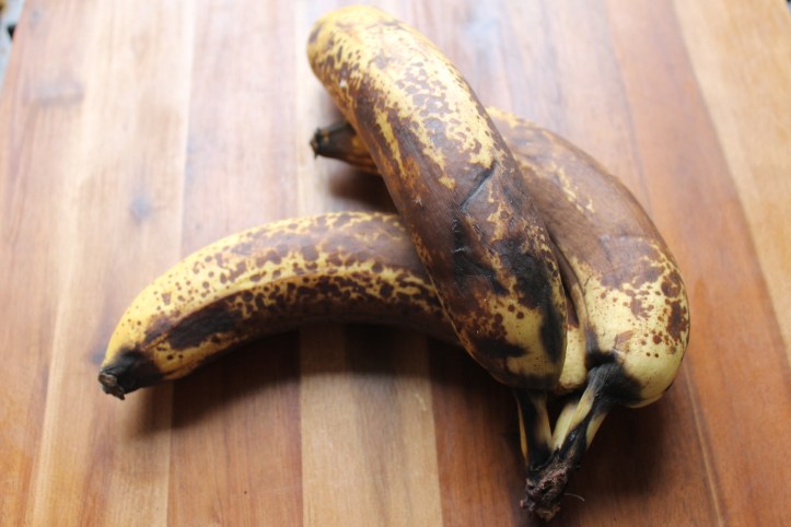Þessir þrír bananar voru farnir að dökkna verulega, voru linir viðkomu og bananailmurinn fannst fram á gang. Einhverjir hefðu kannski hent þeim en svona eru þeir bragðmestir og bestir í bakstur.