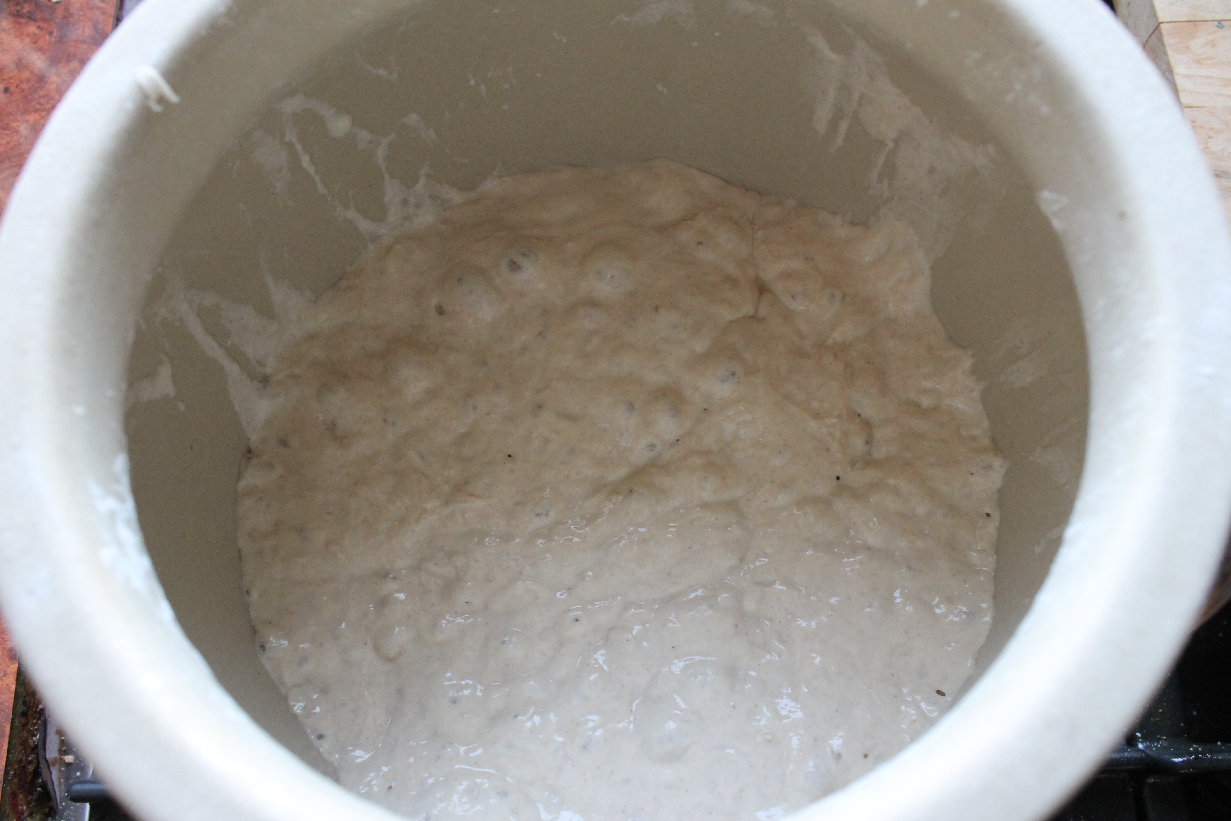 En það er auðvitað ekki bráðnauðsynlegt og stundum vil ég mýkri skorpu og sleppi þessu þá alveg. Í gærkvöldi bakaði ég mér til dæmis fáeinar bollur úr deiginu og þá vildi ég hafa skorpuna mýkri og sleppti þessu.