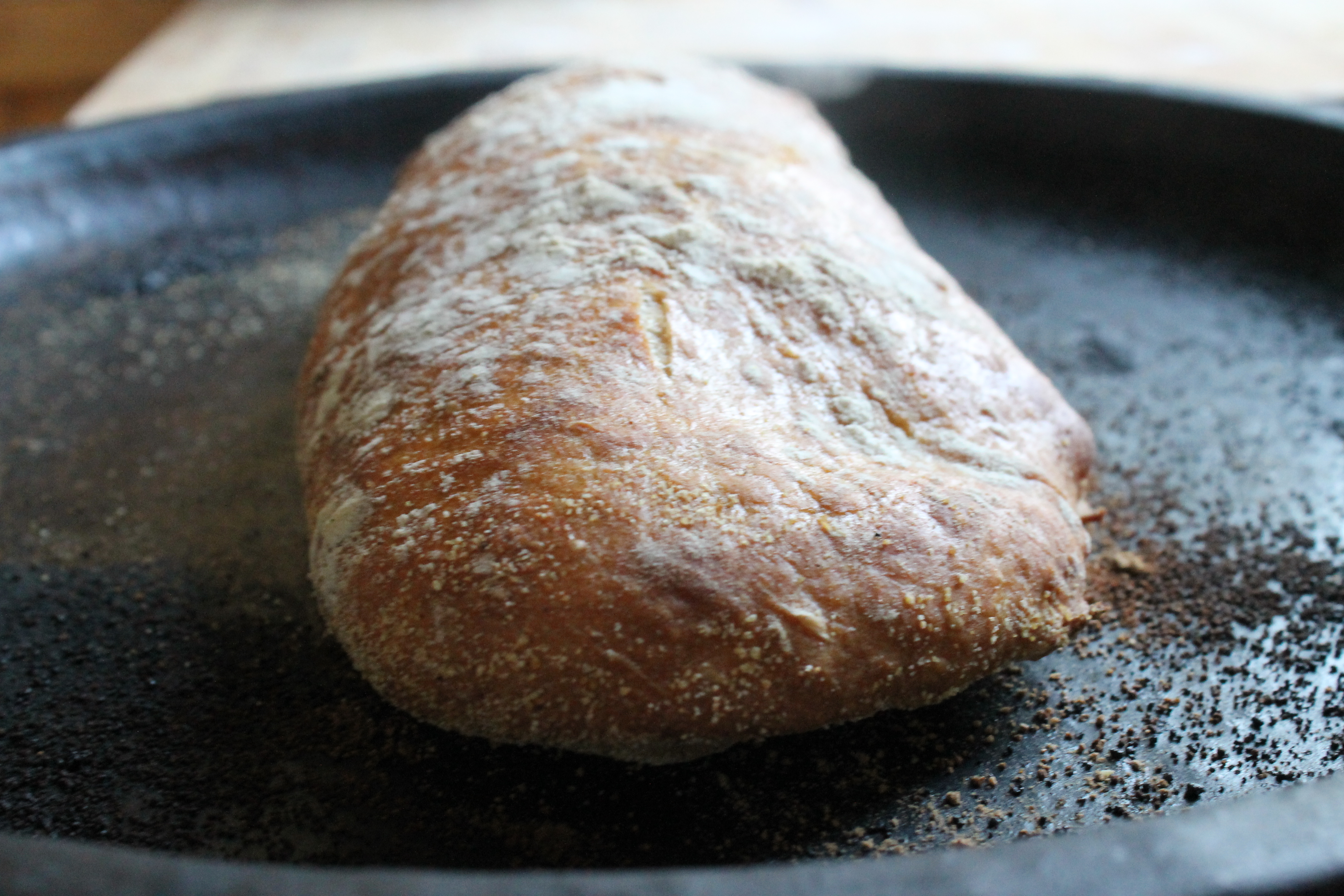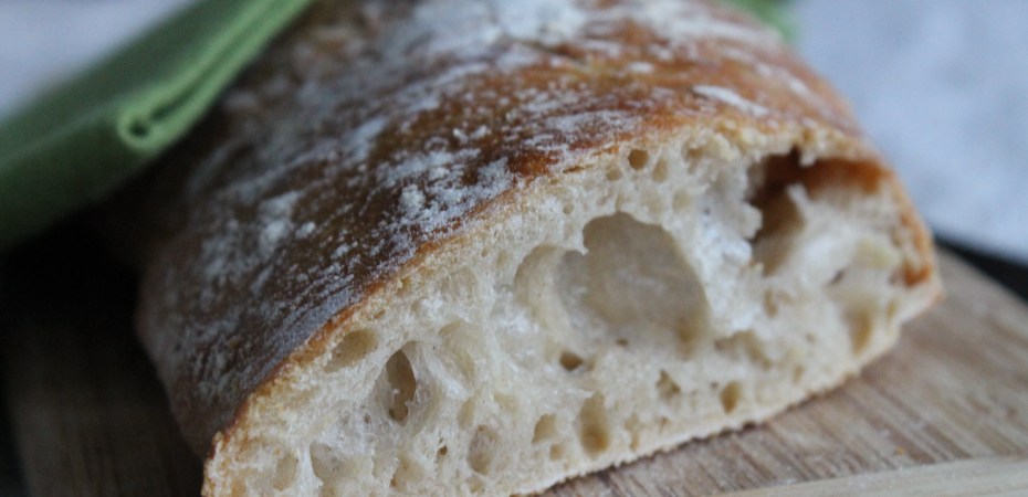 En eitthvað þurfti ég þó og það voru hæg heimatökin því eins og ég sagði frá í fyrradag bjó ég til deig þá og meirihlutinn af því var enn í ísskápnum. Svo ég ákvað að baka mér eitt ciabatta-brauð.