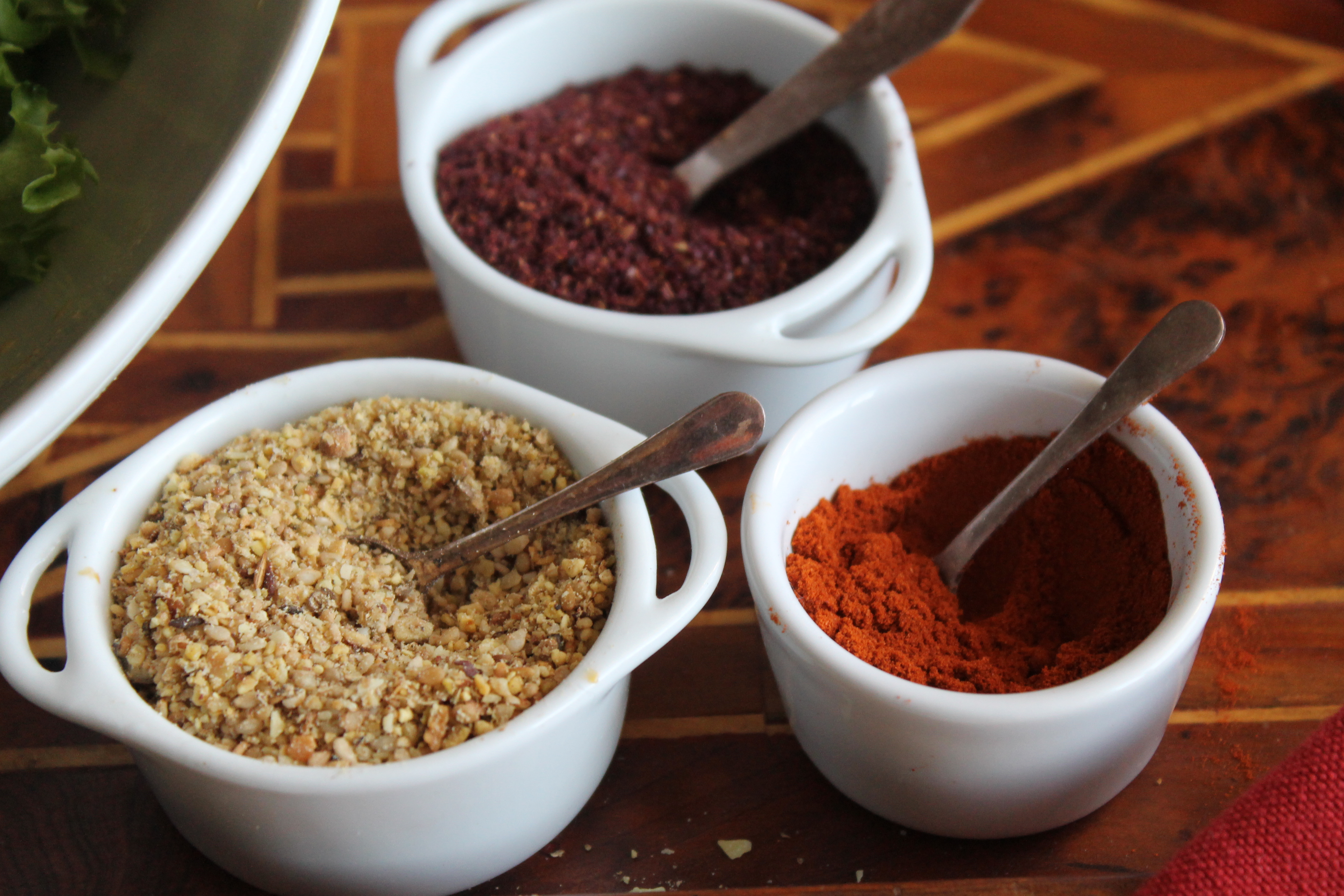 Og til að krydda meira: Pistasíu-dukkah, reykt paprika og súmak.