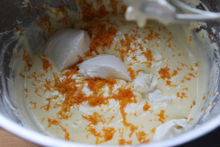 Ég reif börkinn af tveimur mandarínum mjög fínt og setti út í og hrærði svo 200 g (1 dós) af sýrðum rjóma, 18%, saman við. – Það mætti líka nota appelsínubörk og þá dugir 1 appelsína.