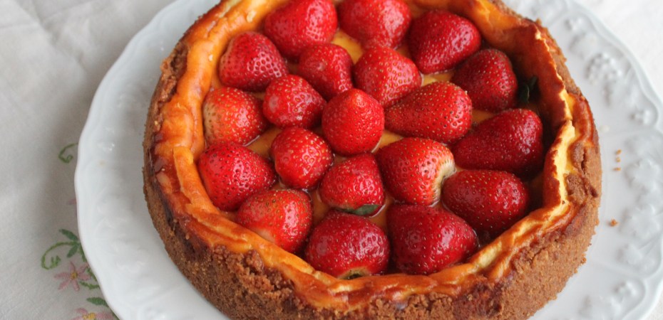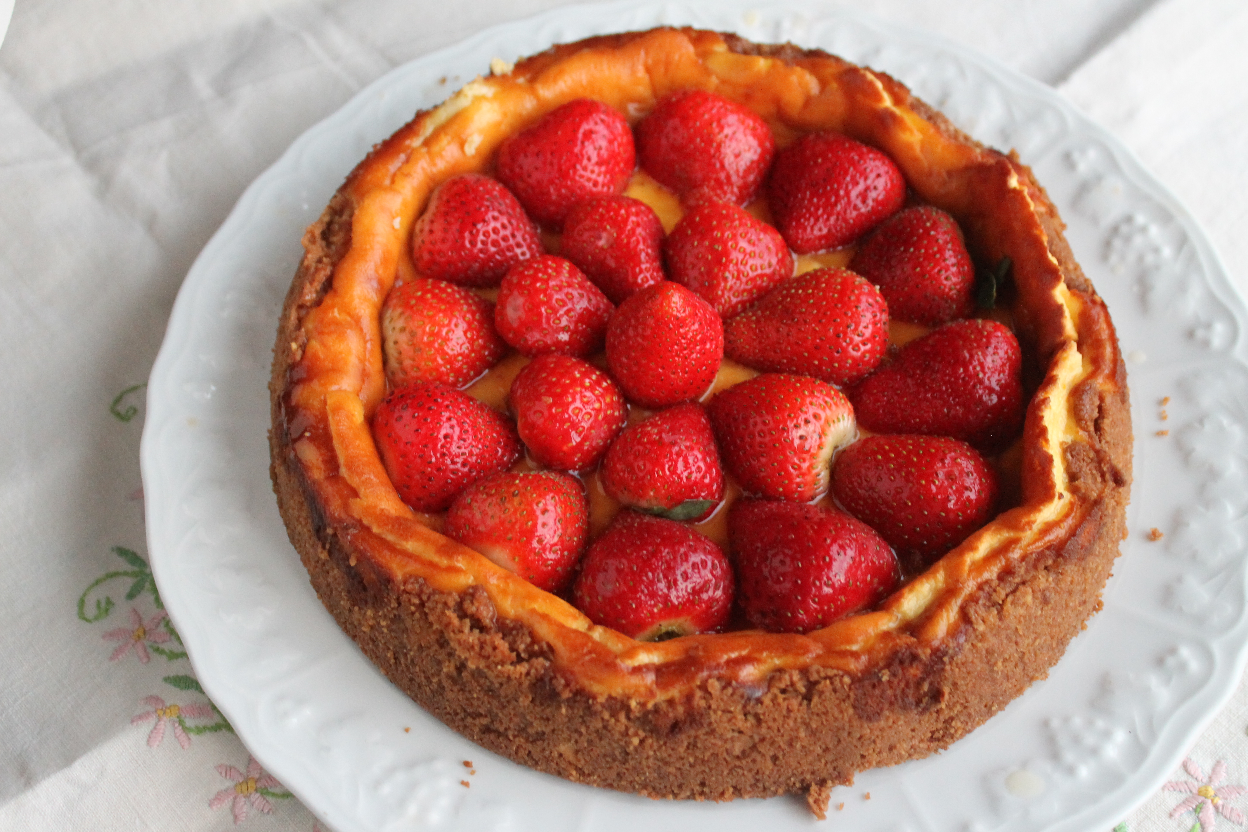 Ég setti hér uppskrift að bakaðri jarðarberjaostaköku í vor en hún var reyndar ekki eins og hún átti að vera – tvíklúðruð satt að segja – og hér kemur þess vegna önnur útgáfa. Ekki alveg sama uppskriftin og betur heppnuð í alla staði.