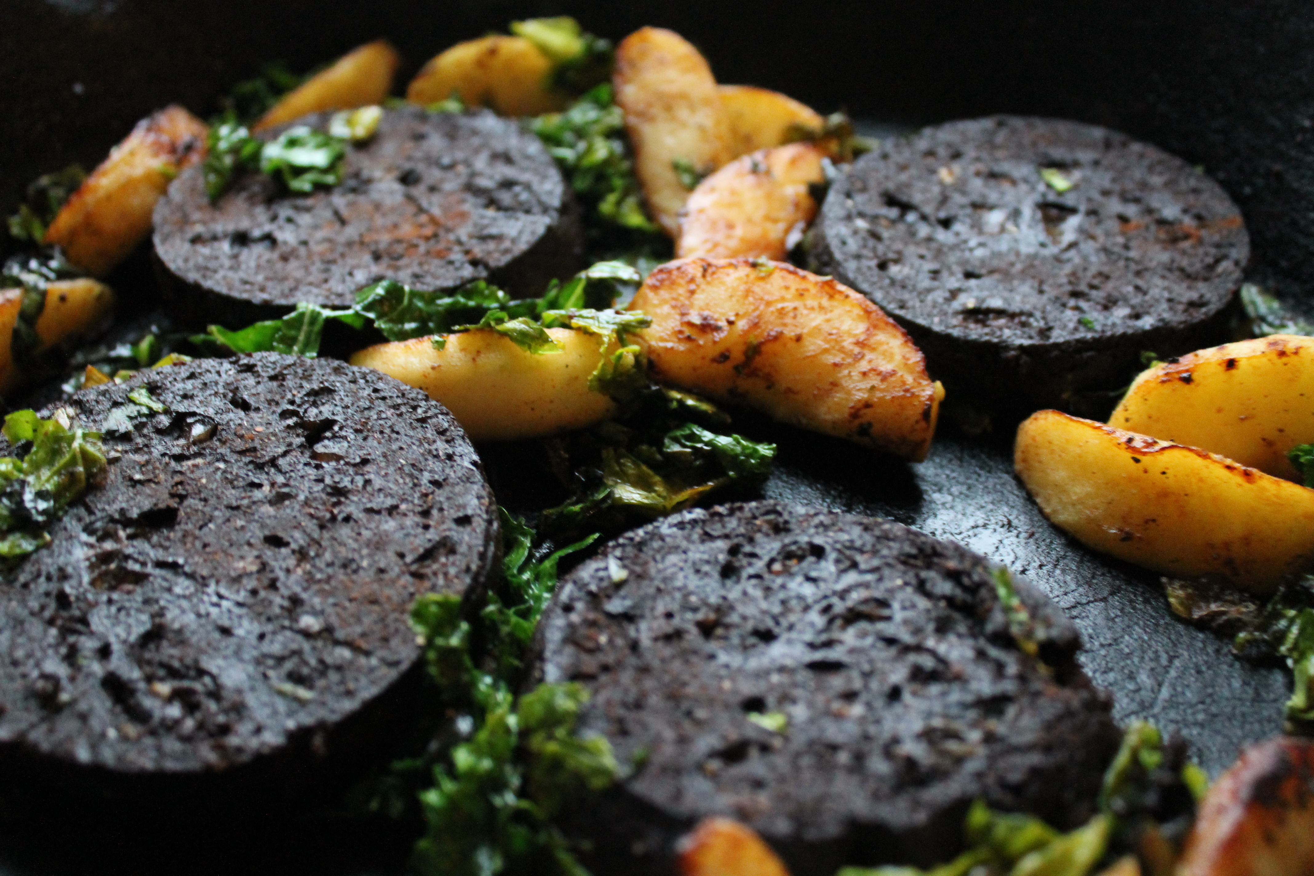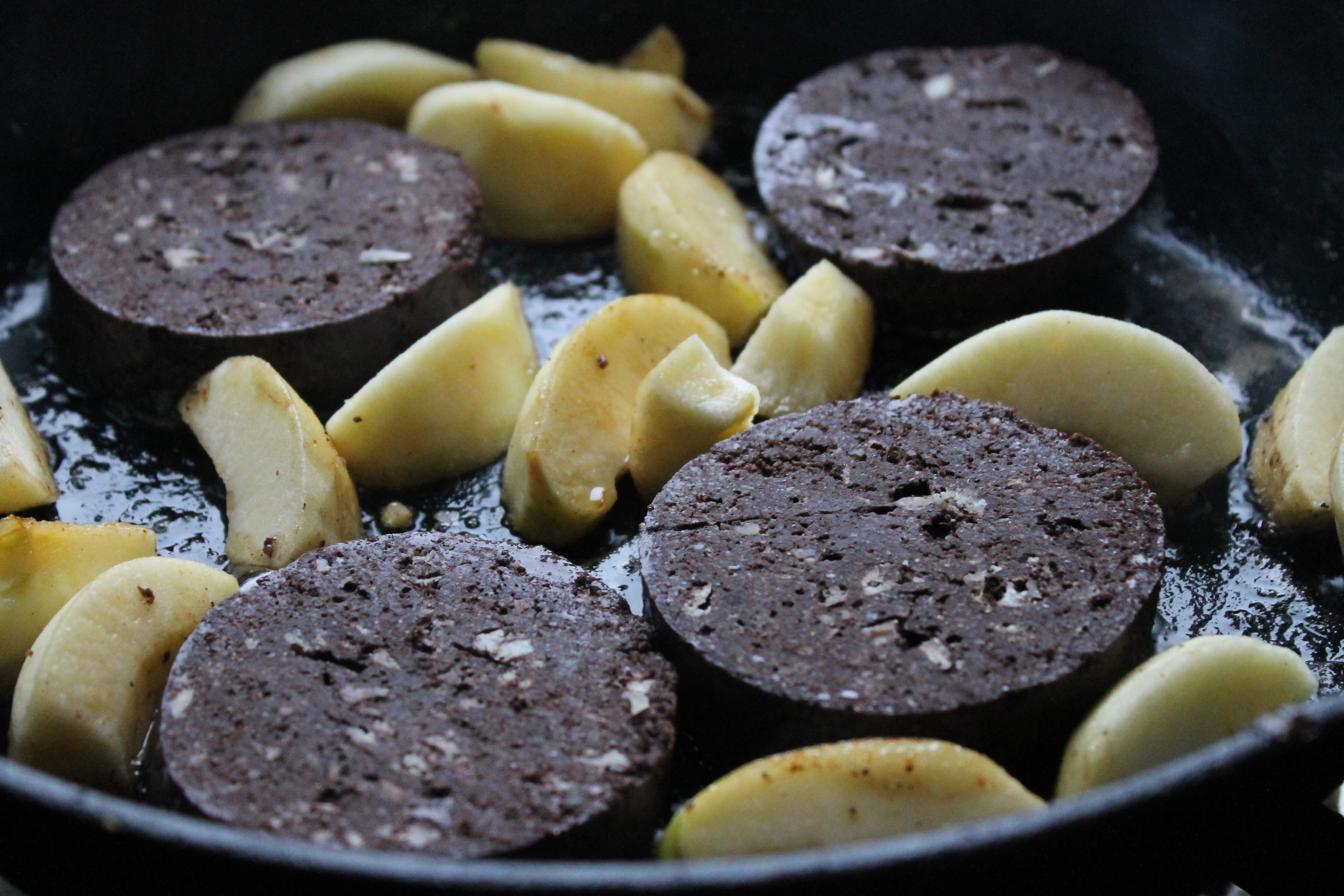 Blóðmör og epli er enn algengari samsetning en er aftur á móti ekki klisja, heldur aldagömul hefð’ (nema ekki hérlendis) sem einfaldlega má rekja til þess, eins og ég nefndi í gær, að þetta er bara akkúrat hárrétt samsetning. Sýran og sætan í eplunum er mótvægi við fituna og ,,þyngslin“ í blóðmörnum og þetta smellpassar saman.