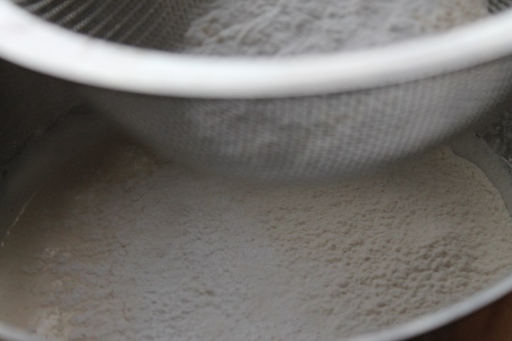 Svo sigtaði ég hveitið og kartöflumjölið yfir deigið …
