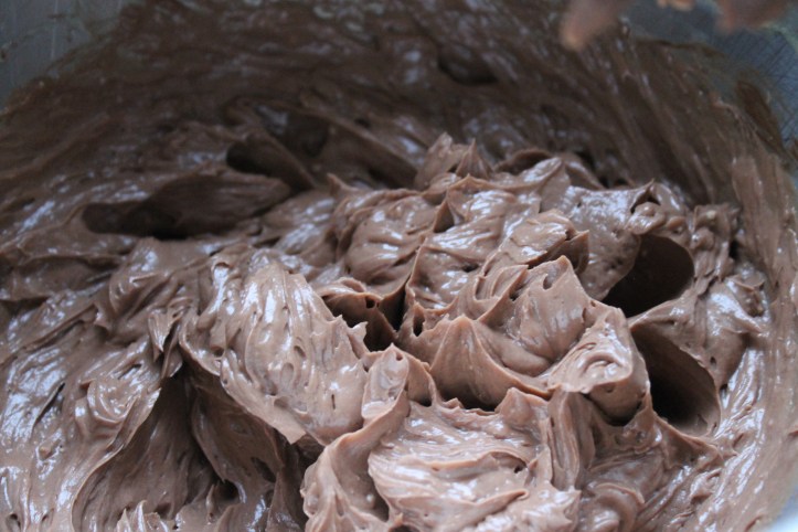 Svo hrærði ég súkkulaðinu saman við. Þetta er nú svolítið girnilegt (og alls ekki svo sætt). Ef maður vill hafa kremið dekkra má líka hrærða kakódufti saman við.