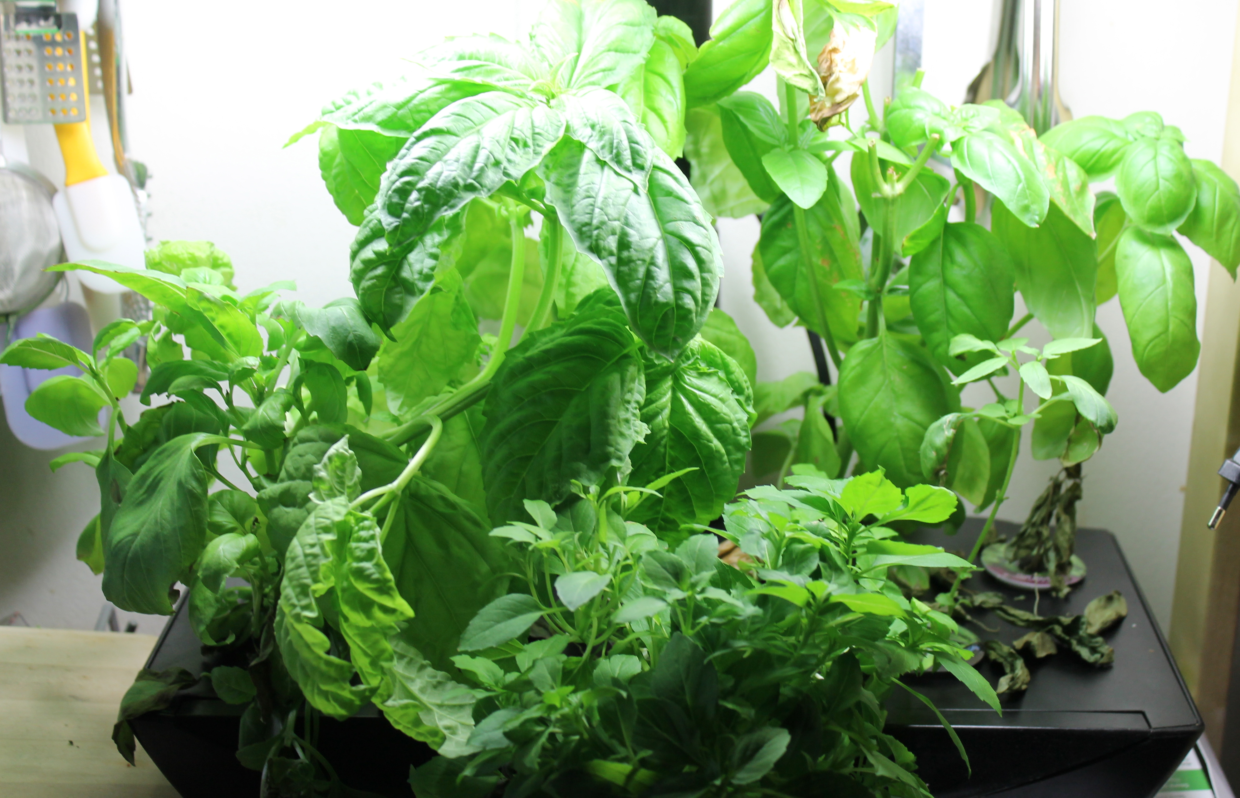 • Já og nei. Stórefa að hann borgi sig nokkurntíma peningalega (dýr og töluverður rekstrarkostnaður) en það er afskaplega þægilegt að eiga þetta – ég reyndar er yfirleitt bara með basilíkur í mínum og það er gaman að hafa mismunandi tegundir.