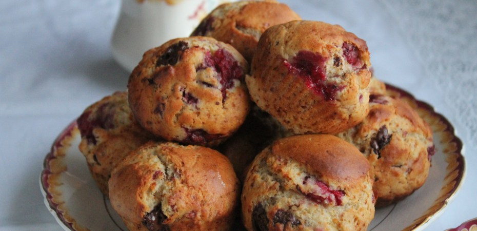 Þessi uppskrift er ekki úr bókinni, enda er ég handónýt í að fara eftir uppskriftum, líka mínum eigin – en hún er spunnin út frá uppskriftunum þar. Það er nefnilega þannig með múffubakstur að hann er frekar frjálslegur, ,,muffins are very forgiving“ eins og bandarísk kunningjakona mín sagði, það er hægt að breyta uppskriftunum endalaust og semja nýjar, bara ef maður er með ákveðnar grunnreglur og heldur hlutföllum nokkurn veginn – ég veit til dæmis sirka hvað þarf af súrri mjólkurafurð/eggjum/sætuefni/feiti/hveiti/lyftiefnum til að fá fram ákveðna niðurstöðu og svo er þetta bara spurning um bragðefni. Sem geta verið nánast hvað sem er.