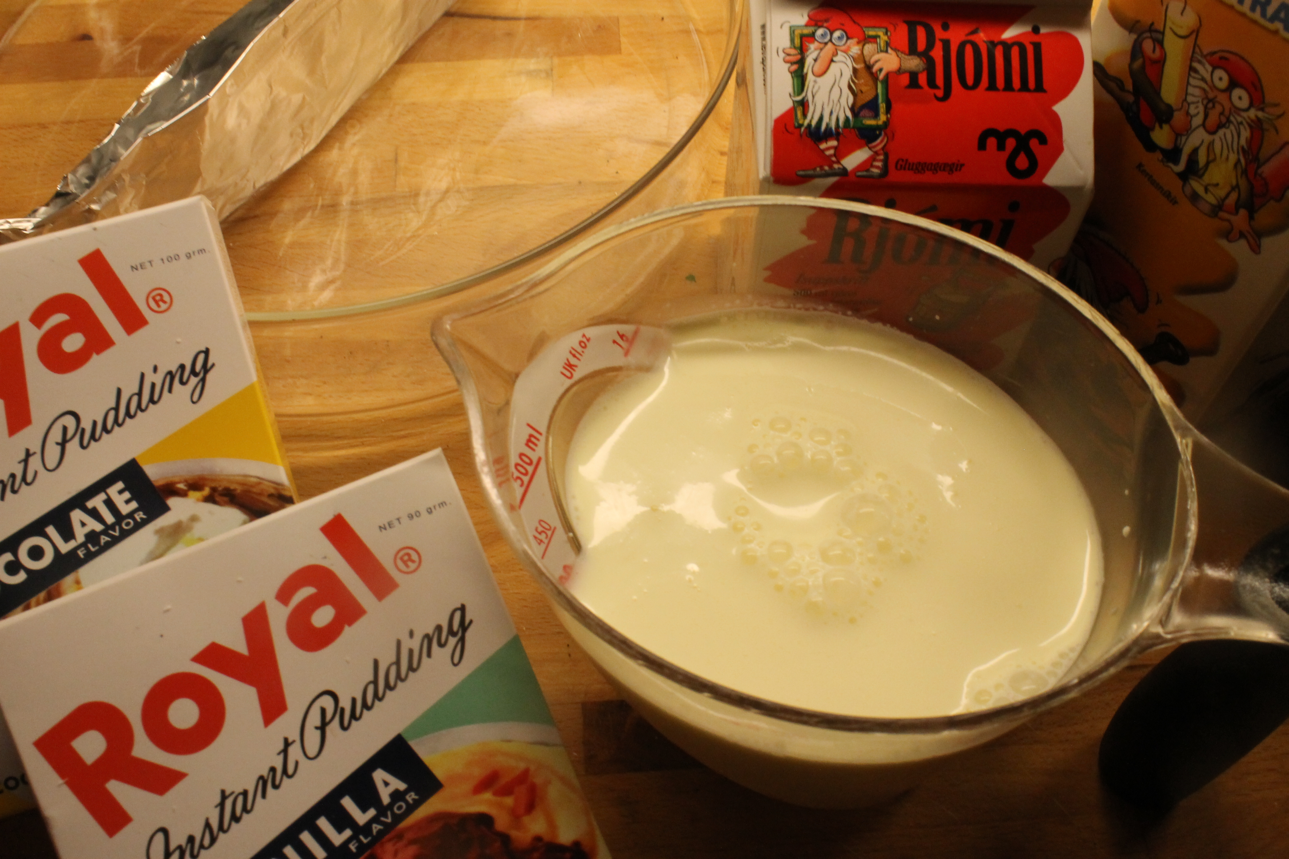 Það þýðir samt ekki að ég hafi bara þeytt saman búðing í skál og skellt á borðið. Neinei. Ég get aldrei séð neitt í friði, ekki einu sinni blásaklausan Royal búðing.