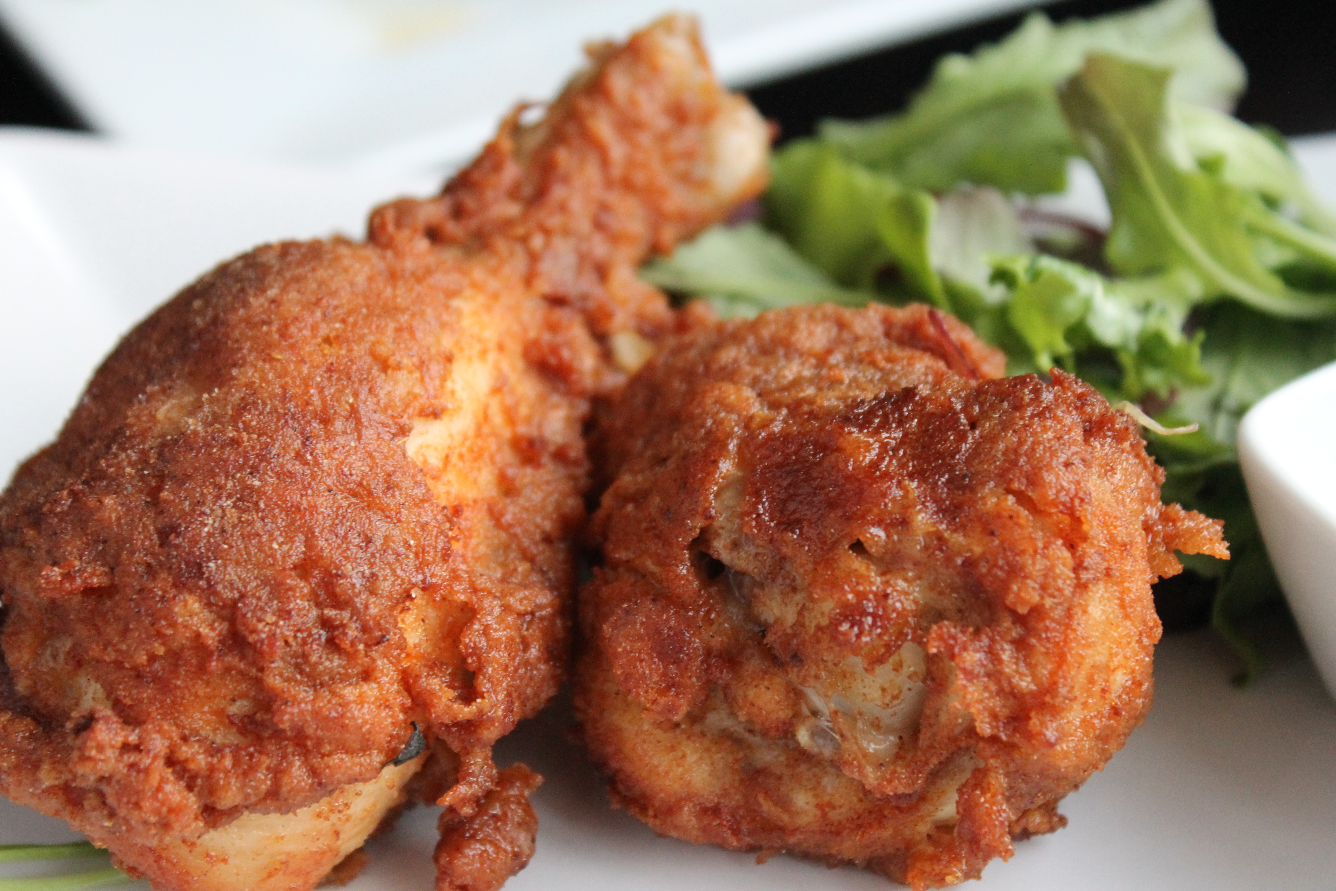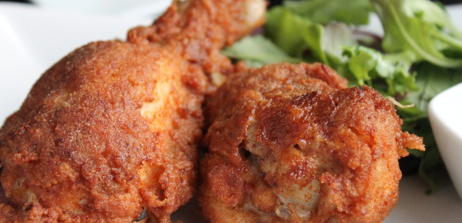 Ég sagði í gær að ég hefði fyllst löngun í vöfflur þegar ég var að lesa mér til um kjúkling með vöfflum og svo steikti ég mér vöfflur. En þessu fylgdi fleira, mig fór líka að langa einhver ósköp í steiktan kjúkling og ég lét það eftir mér líka. Og ég er ekkert að tala um ofn- eða pönnusteiktan kjúkling, neineinei. Heldur ekta fried chicken – djúpsteiktan kjúkling með knasandi hjúp. Sem er nú kannski ekki það sem fólk er almennt að pæla í svona um miðjan janúar … Samt er rétti tíminn til þess núna ef hann er einhverntíma. Skítakuldi, snjór og vetur og mann vantar eitthvað heitt til að sökkva tönnunum í.