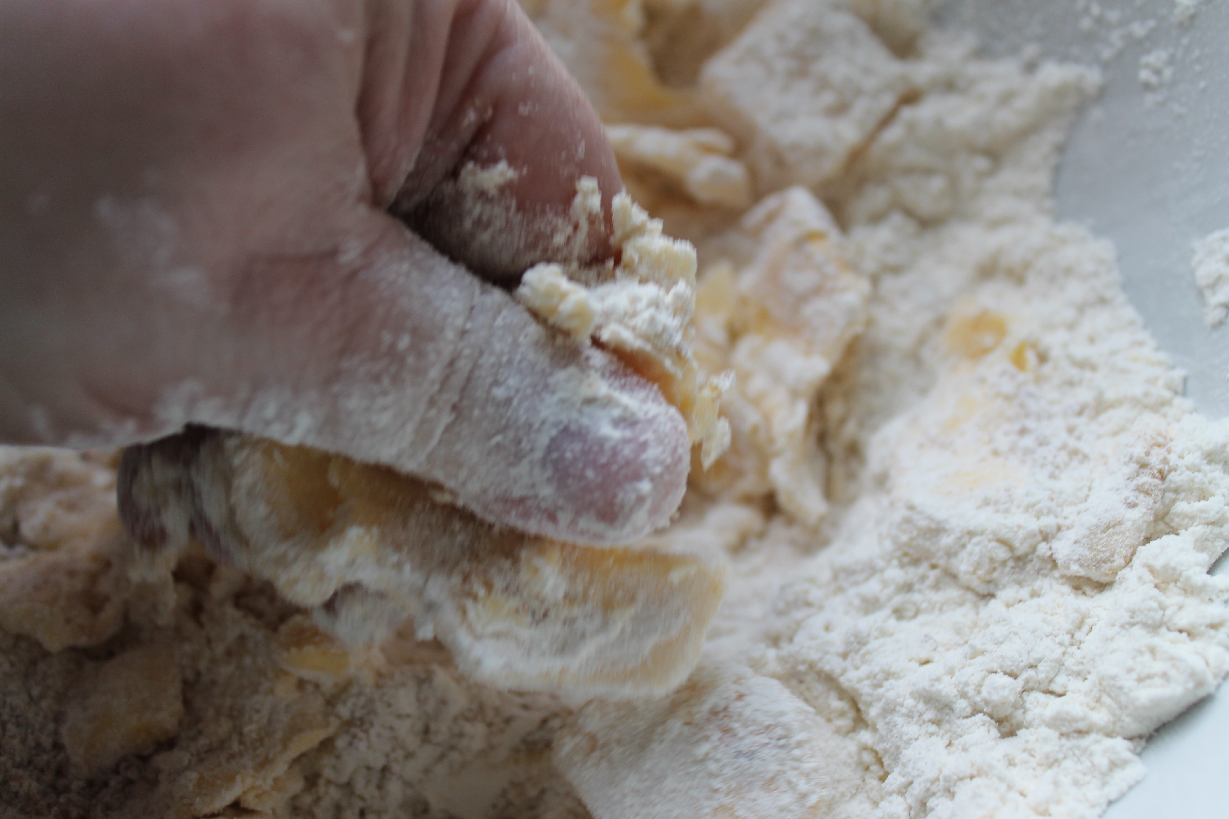 Mylsnan þarf ekkert að vera jöfn og fín og mér finnst reyndar koma betur út að hafa dálítið af klumpum og smjörbitum í henni.