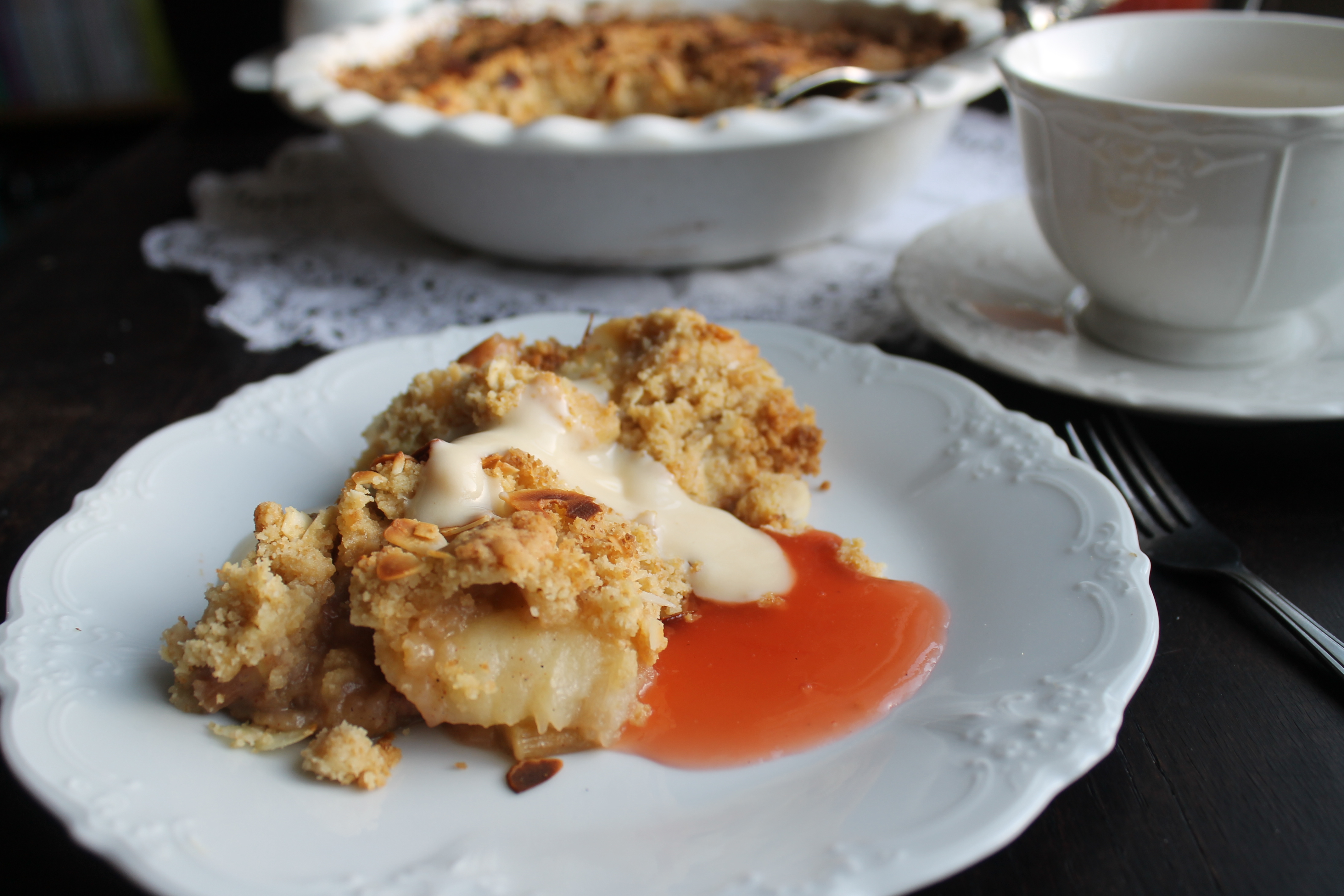 Rabarbarasósa og vanillusósa með, gott kaffi í bolla … Tilvalinn eftirréttur eða bara þegar mann langar í eitthvað gott.
