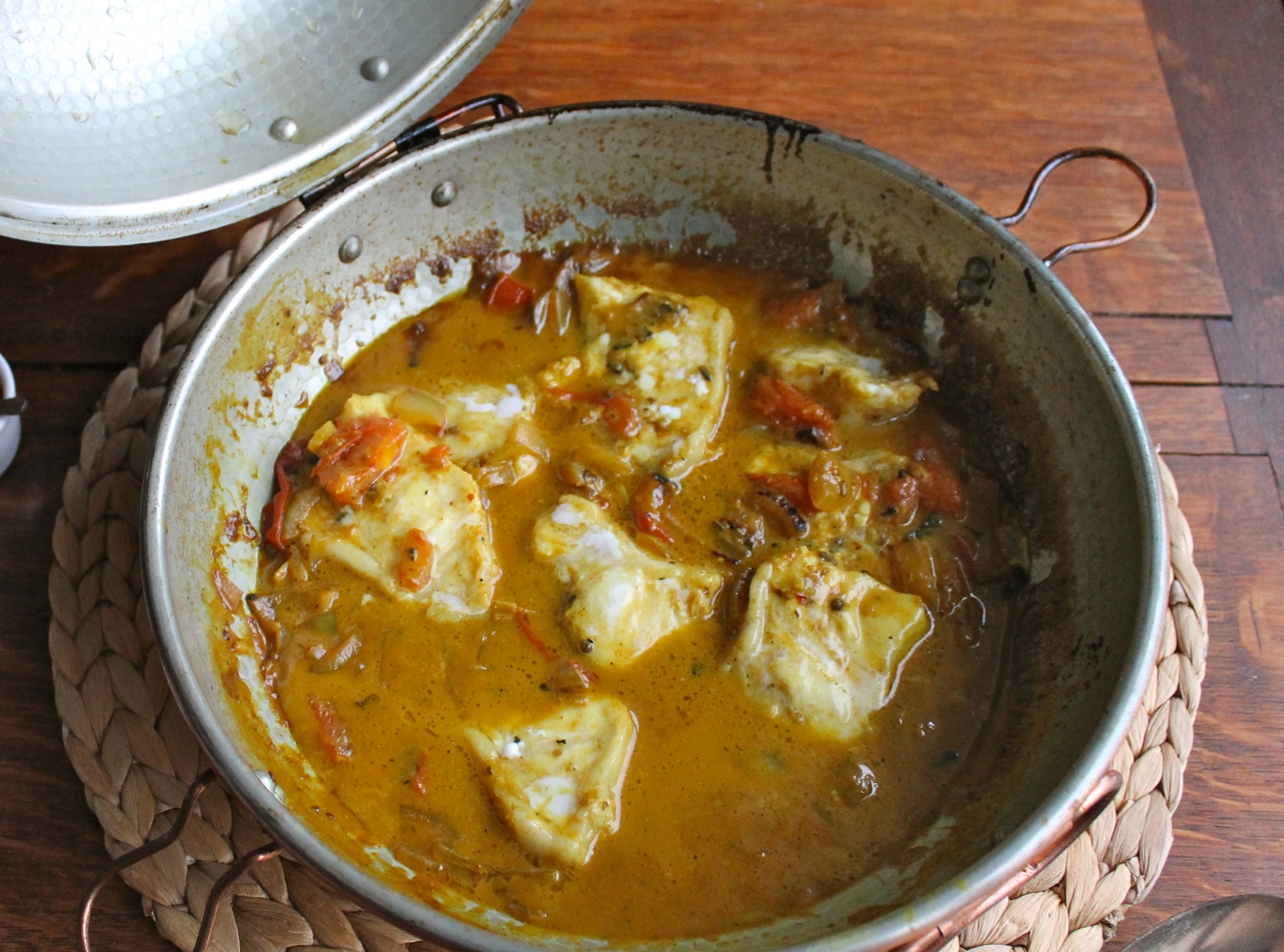 Reyndar passar ekkert illa að elda þennan karrírétt í cataplana því hann er í stíl við karrífiskrétti frá Goa á Indlandi, sem er einmitt gömul portúgölsk nýlenda og þar eru töluverð portúgölsk áhrif.