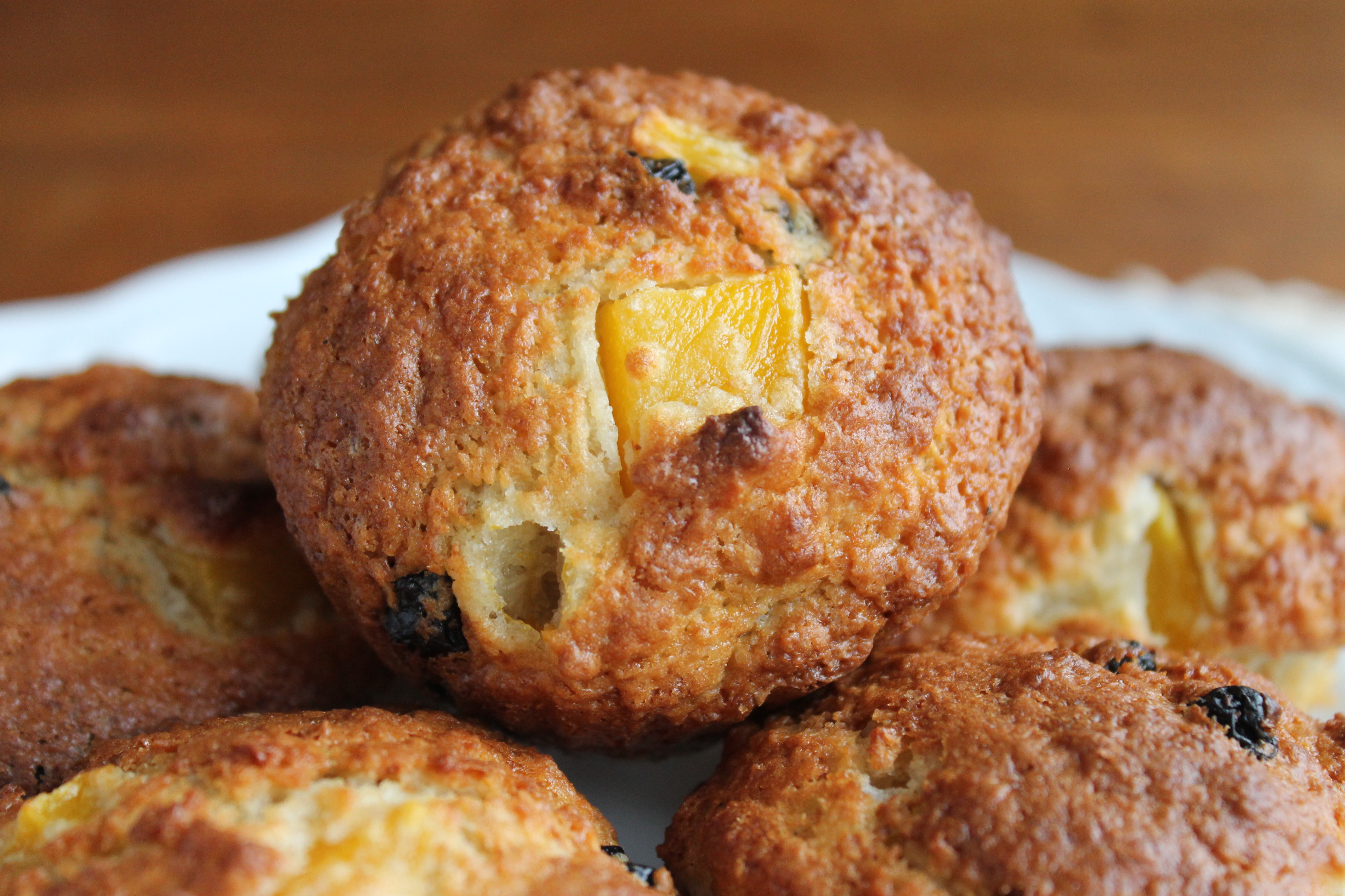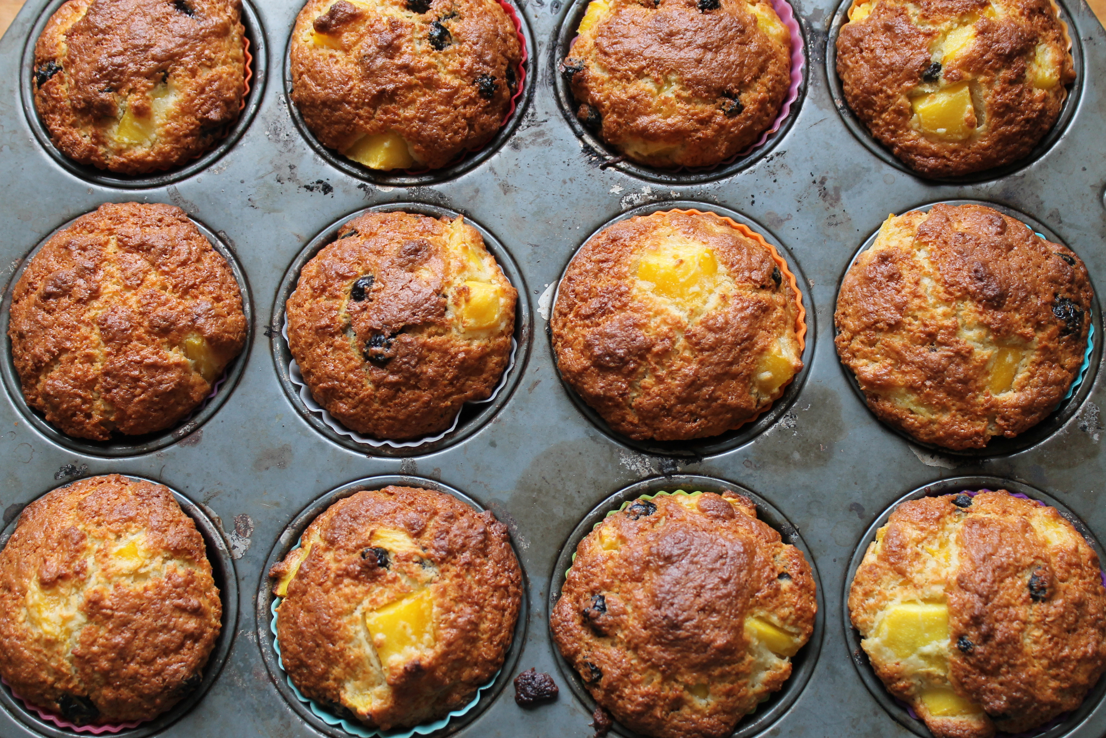 Ég átt fallegt og vel þroskað mangó sem ég skar flís af í gær til að nota út í salat svo að mér fannst upplagt að nota afganginn af því í eitthvert bakkelsi. Var að velta fyrir mér mangóböku og fleiru en ákvað á endanum að baka múffur. Mér fannst þó vanta eitthvað með mangóinu og ákvað að bæta við bláberjum – þurrkuðum reyndar, en það má nota frosin. Ég vildi þó frekar þurrkuð því þau frosnu smita dálítið út frá sér í deigið.