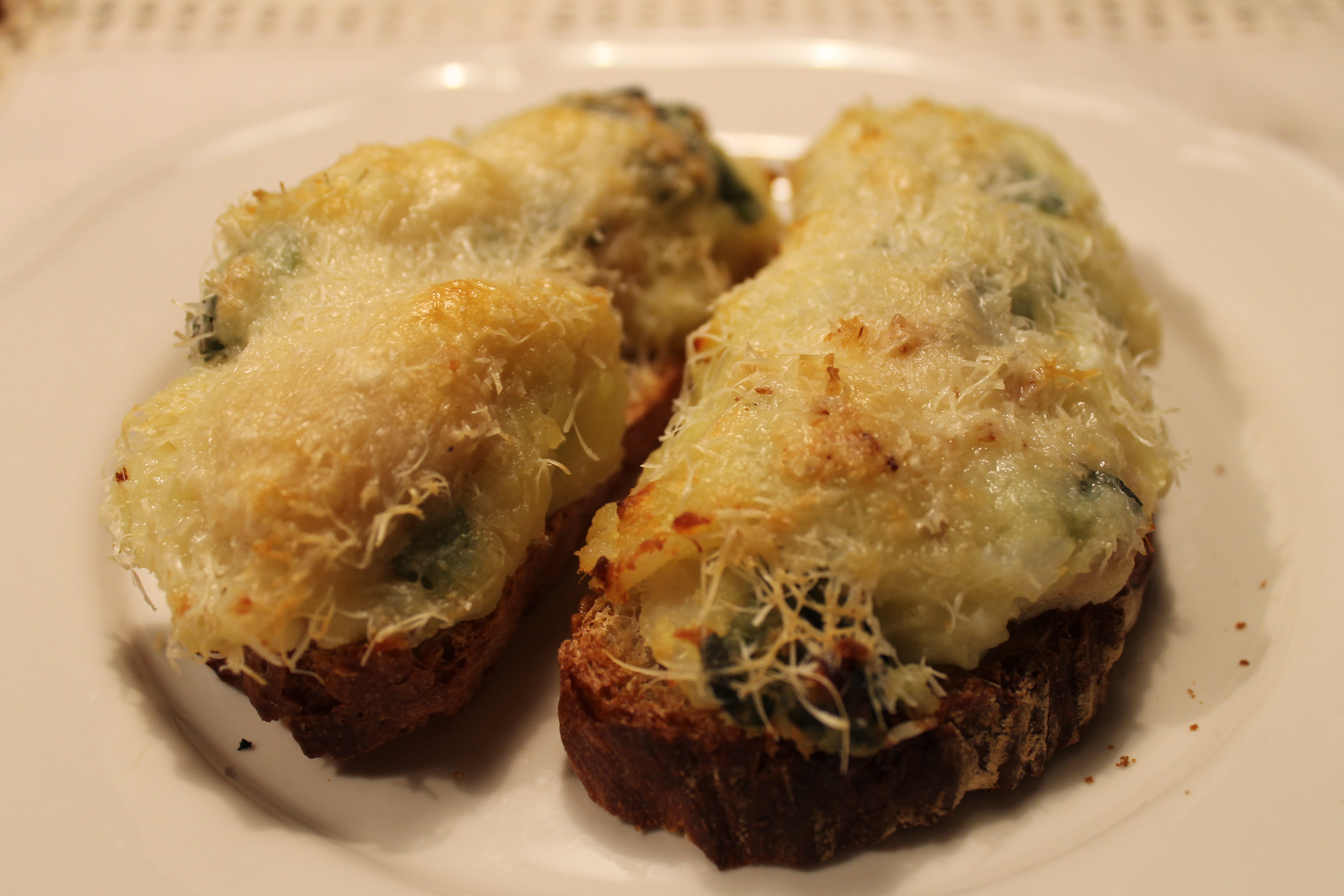 Afganginn borðaði ég svo í kvöldmatinn áðan – heimabakað brauð, þykkt lag (eða hrúga eiginlega) af plokkfiski, rifinn parmesanostur, sett undir grillið þar til allt er heitt í gegn og osturinn hefur tekið lit. Alveg ljómandi.