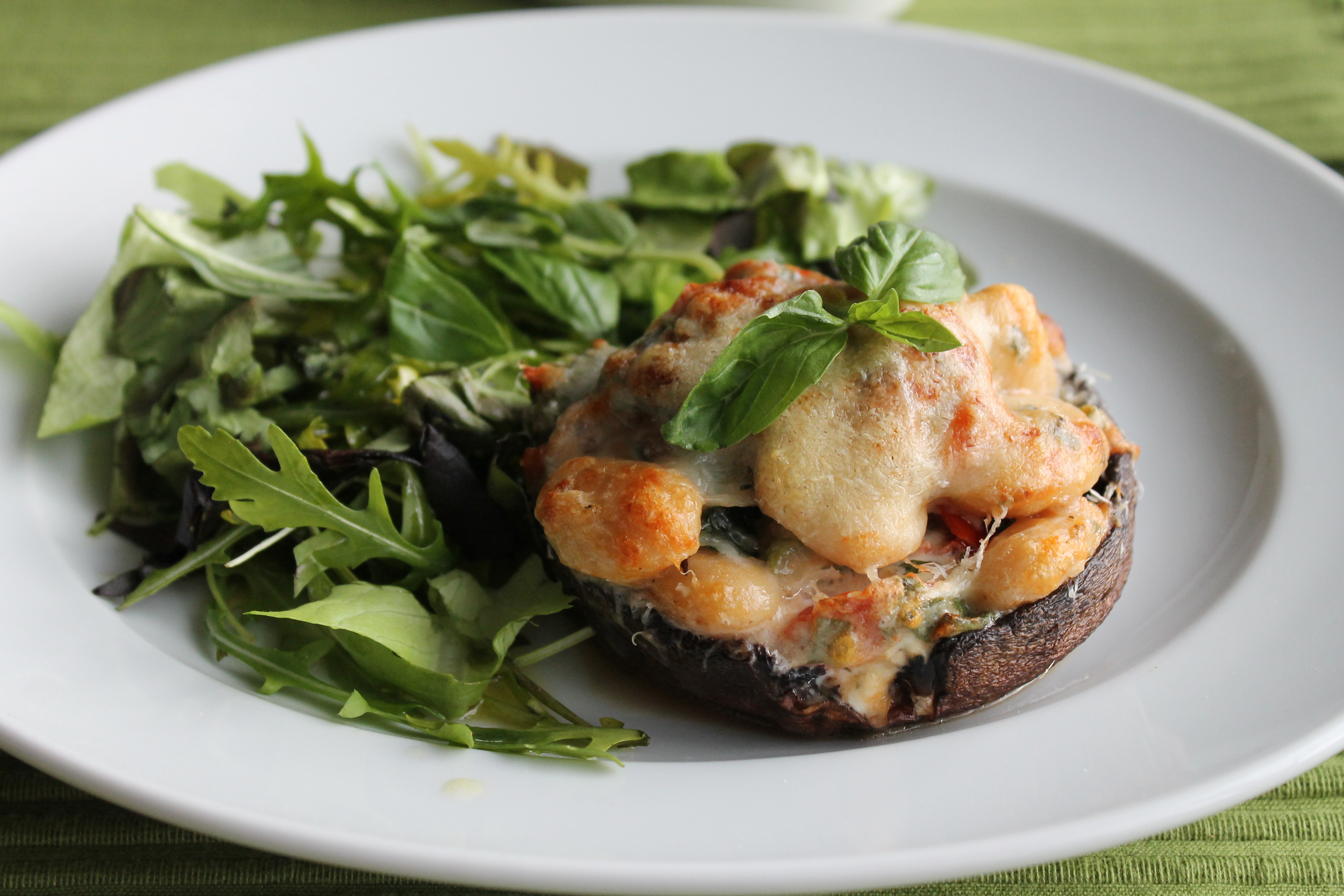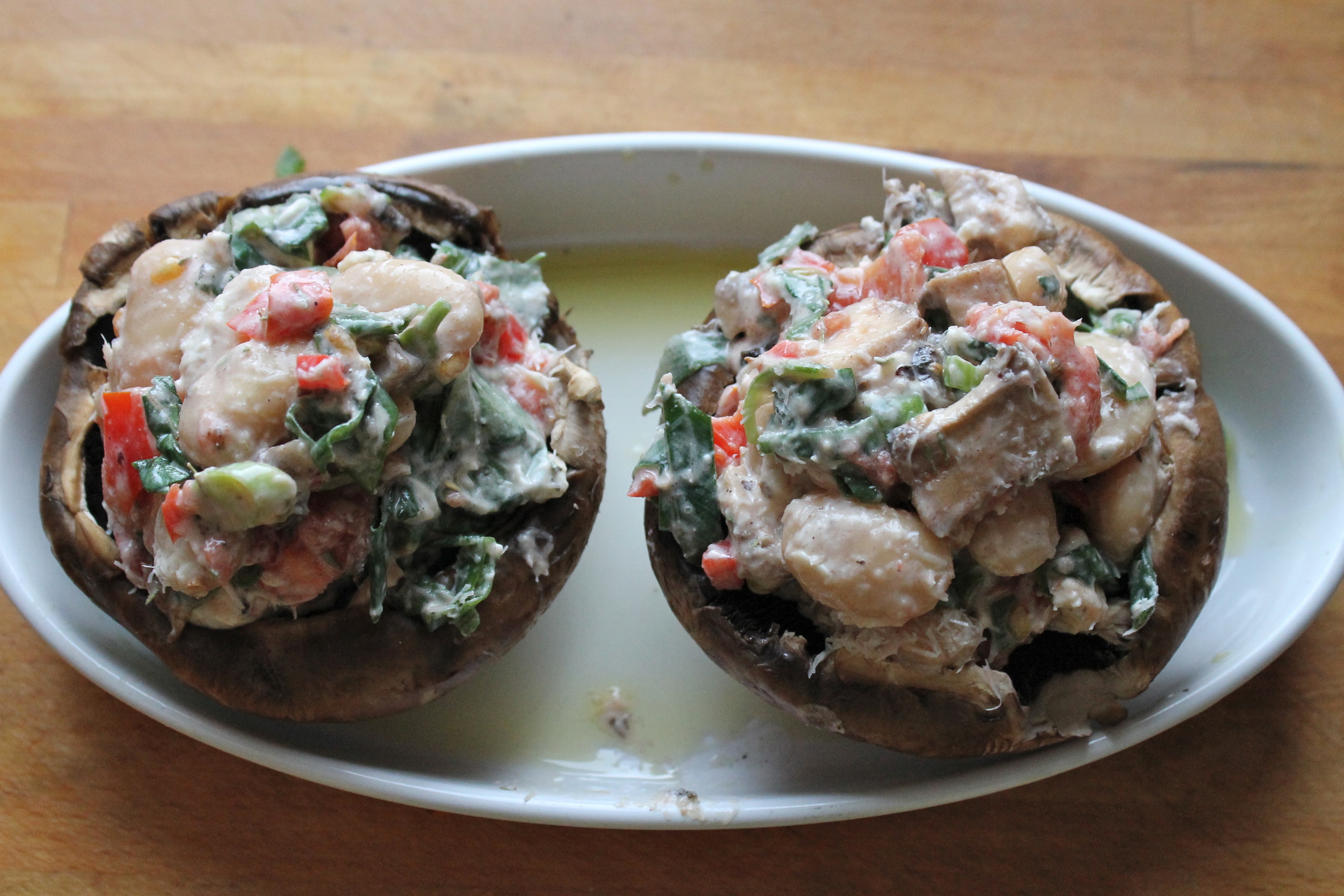 Fylltir portobellosveppir með smjörbaunum og fleiru