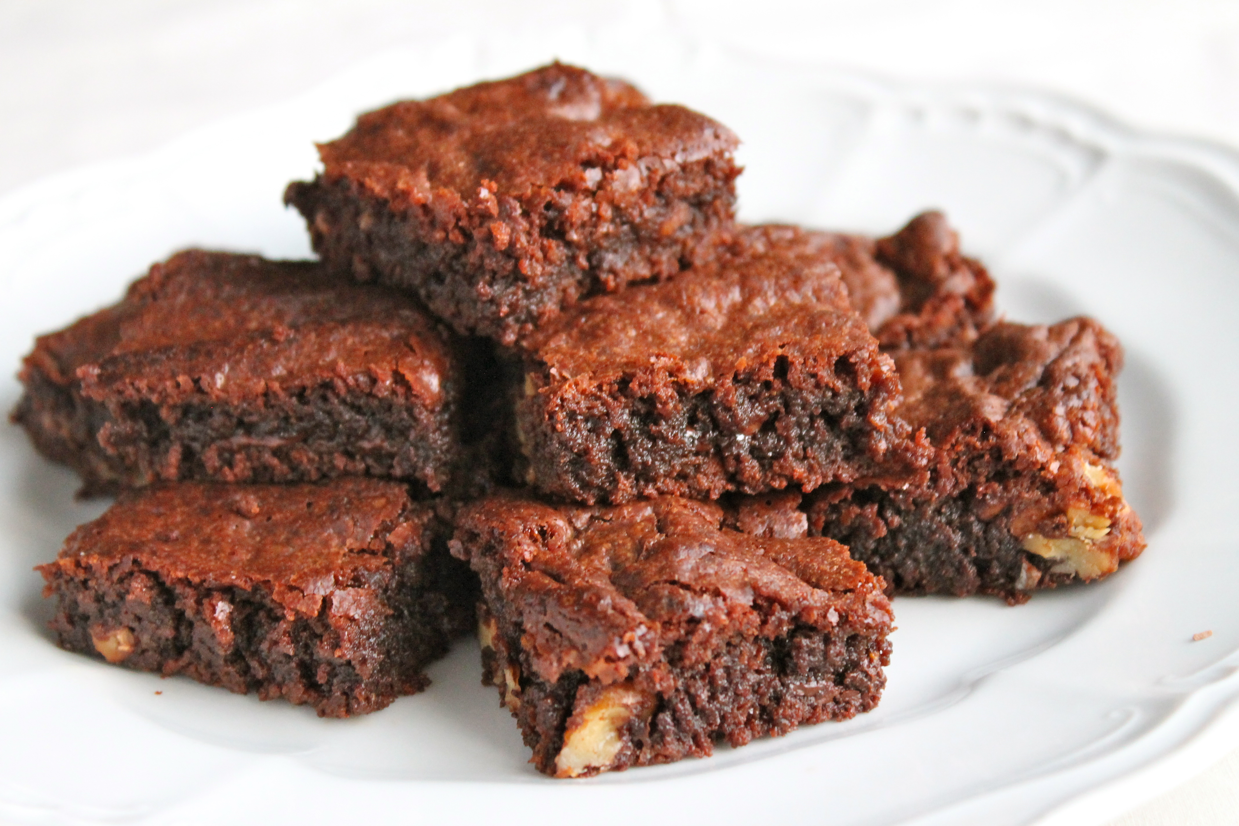 En allavega, ég ákvað að baka eitthvað sætt svona í tilefni af sykurskattinum og þegar ég var í Bónus áðan ákvað ég að mig langaði í brúnkur (brownies). Einhverjar sætar og súkkulaðiríkar og mjúkar og pínulítið seigar. Mér datt í hug að baka þær frægu Knock you naked-brownies, sem eru upprunnar á veitingahúsinu Salt Creek Steakhouse í Colorado og ýmsir hafa tileinkað sér en ákvað svo að gera eitthvað mun einfaldari útfærslu – eiginlega eins einfalt og hægt er að hafa brúnkur, ekki einu sinni hrærivél eða þeytari eða neitt. Í Knock-you-naked-brúnkunum er líka notað kökumix úr pakka og ég er ekki mikið fyrir svoleiðis.