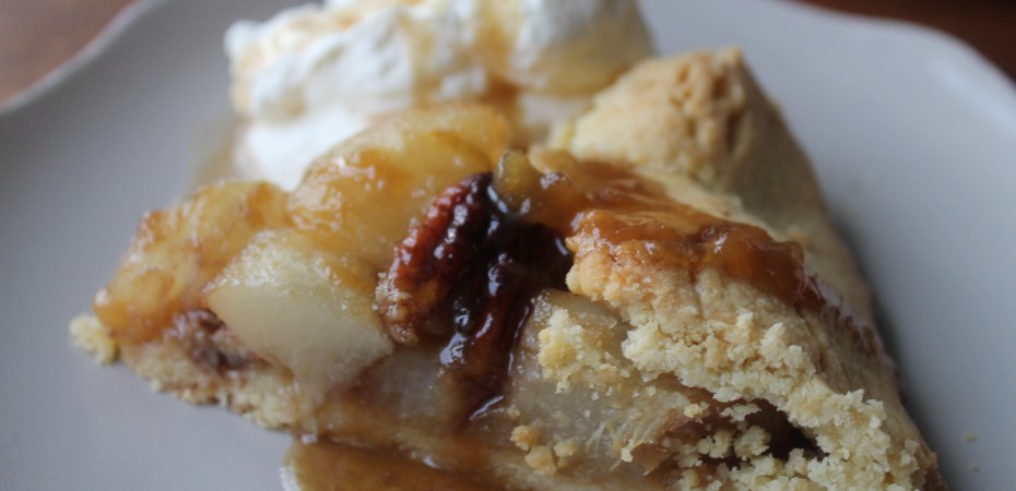 Ég var fyrst með aðra köku í huga en hún tekur mun lengri tíma svo ég ákvað að baka bara fljótlega og afar einfalda peruböku. Svo einfalda að ég notaði ekki einu sinni form. Svona bökur eru það sem kallast á útlensku ,,rustic“ sem oft er þýtt sem sveitalegar, en það eiginlega passar ekki við íslenskar sveitir, finnst mér. Sjóaralegar kannski … En útlitið skiptir nú ekki öllu.