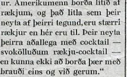 Þarna virðist rækjukokkteill vera óþekktur hérlendis. En fáeinum árum síðar auglýsir Hótel Borg jólamatseðilinn: