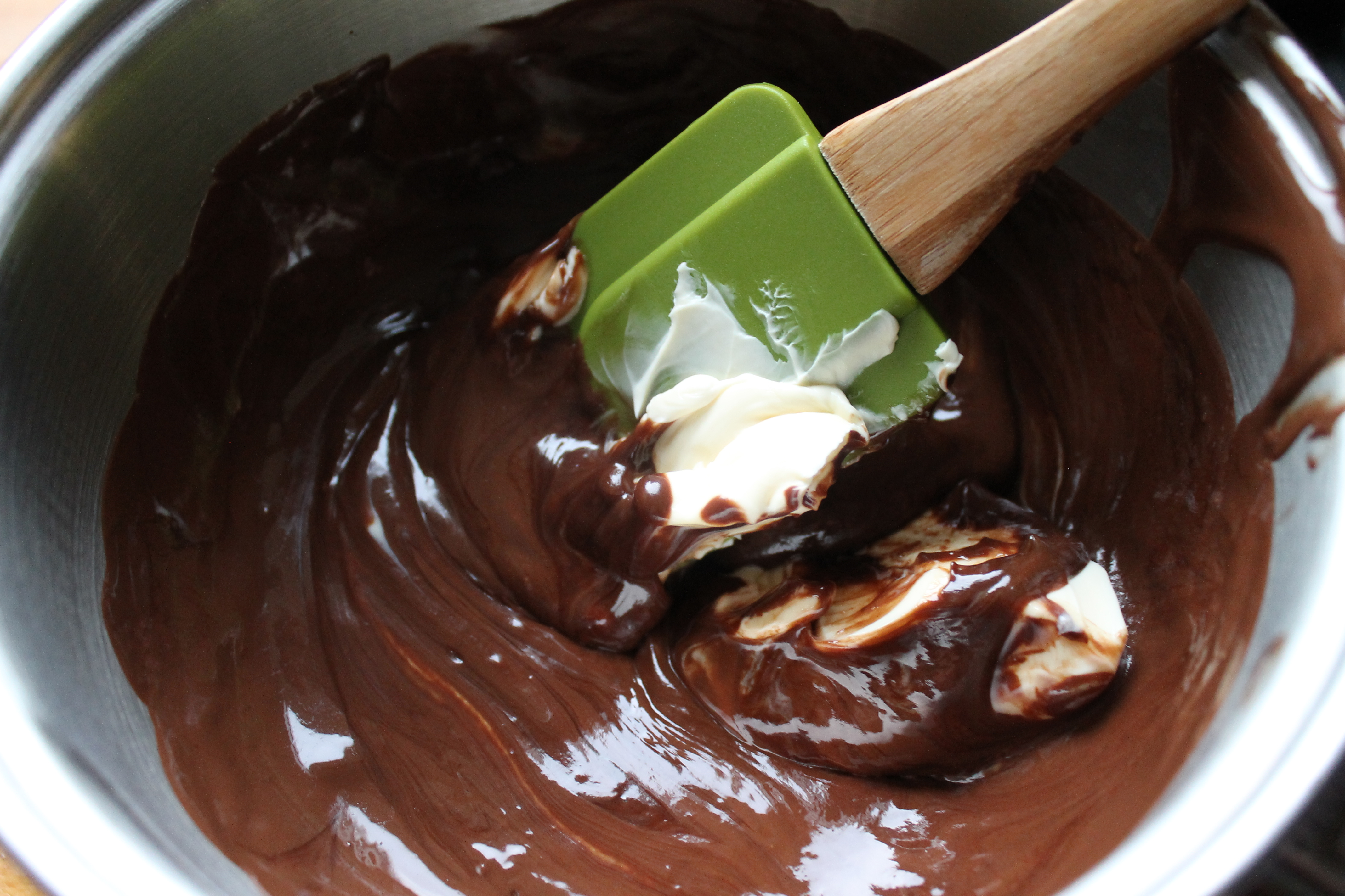 Það má örugglega nota rjómaost en þá er gott að taka hann úr ísskáp nokkru áður en hann er notaður til að láta hann mýkjast áður en honum er hrært saman við súkkulaðið.
