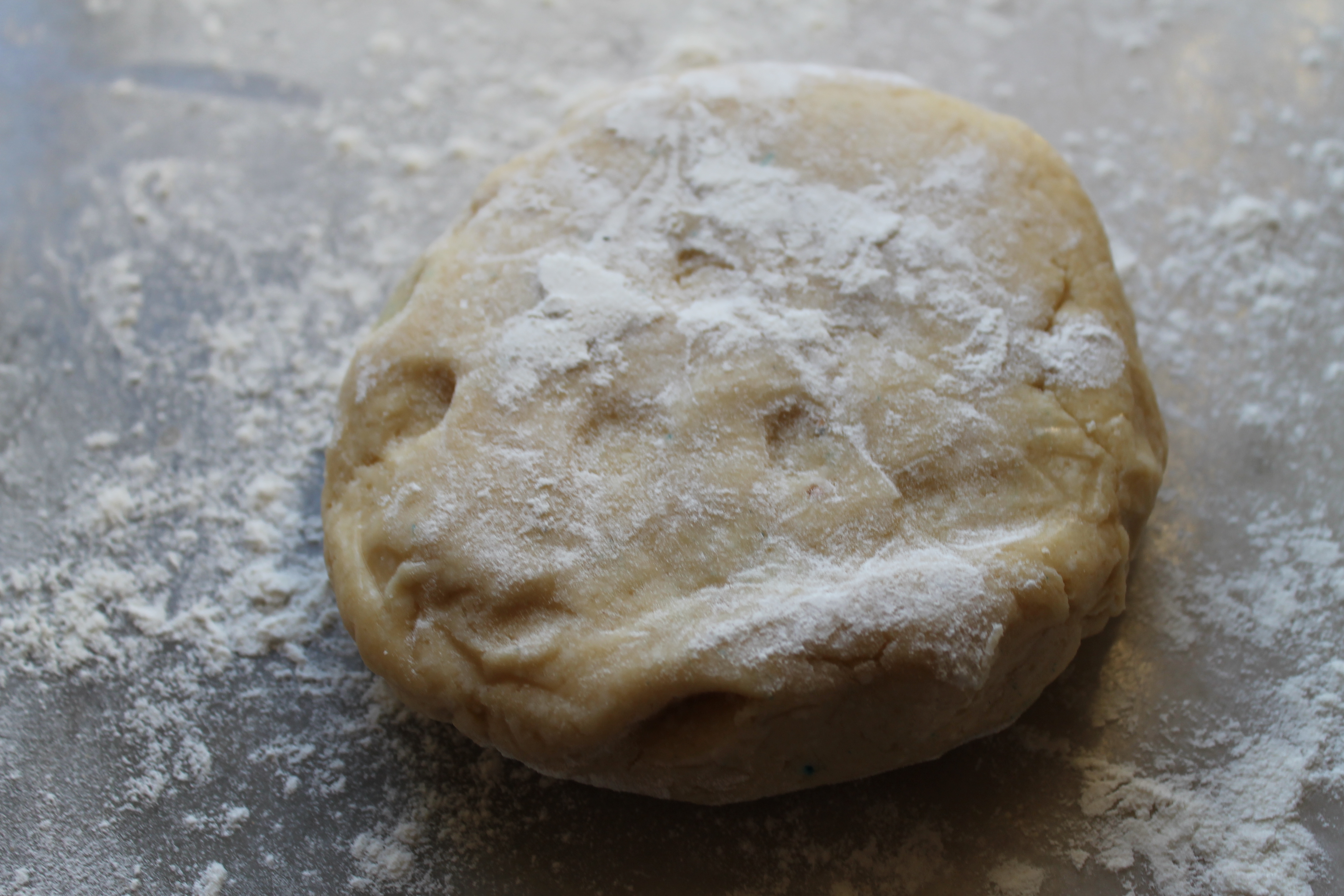 Ég byrjaði á að gera bökudeigið og það má alveg gera það með góðum fyrirvara því það þarf að vera í kæli um tíma. Ef það er haft í nokkra klukkutíma eða yfir nótt þarf þó að taka það úr kæli 20 mínútum fyrir notkun eða svo til að mýkja það.