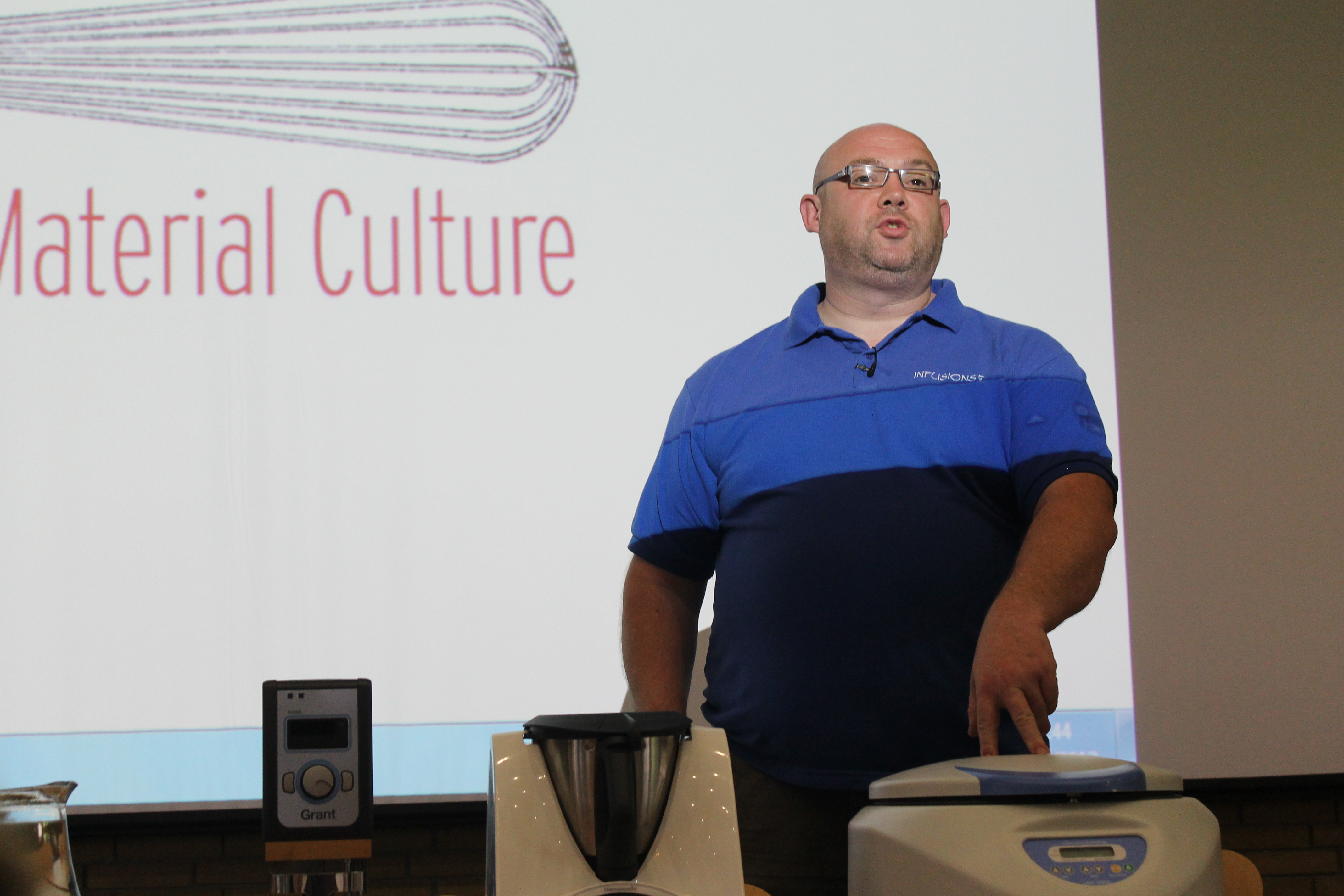 Svo kom Jeremy Medley frá Infusions4Chefs og sagði frá ýmsum tólum og aðferðum sem kokkar eru að nota – og eru sum hver að verða heimilistæki í auknum mæli; það var til dæmis erindi á ráðstefnunni (ég missti því miður af því) um gífurlegar vinsældir Thermomix-tækisins þarna í miðjunni (öðru nafni Bimby) á Ítalíu en þar hafa selst yfir tvær milljónir slíkra tækja á síðustu árum. Og hér erum við að tala um appírat sem kostar kannski 150.000 krónur; þegar ég sá þetta fyrst varð mér að orði: ,,Getum við plís fengið 2007 áftur – bara smástund?“ Mig langar enn í svona í aðra röndina en ég held samt að ég mundi afar lítið nota það. En það virðist vera á góðri leið með að breyta ítalskri heimilismatargerð.