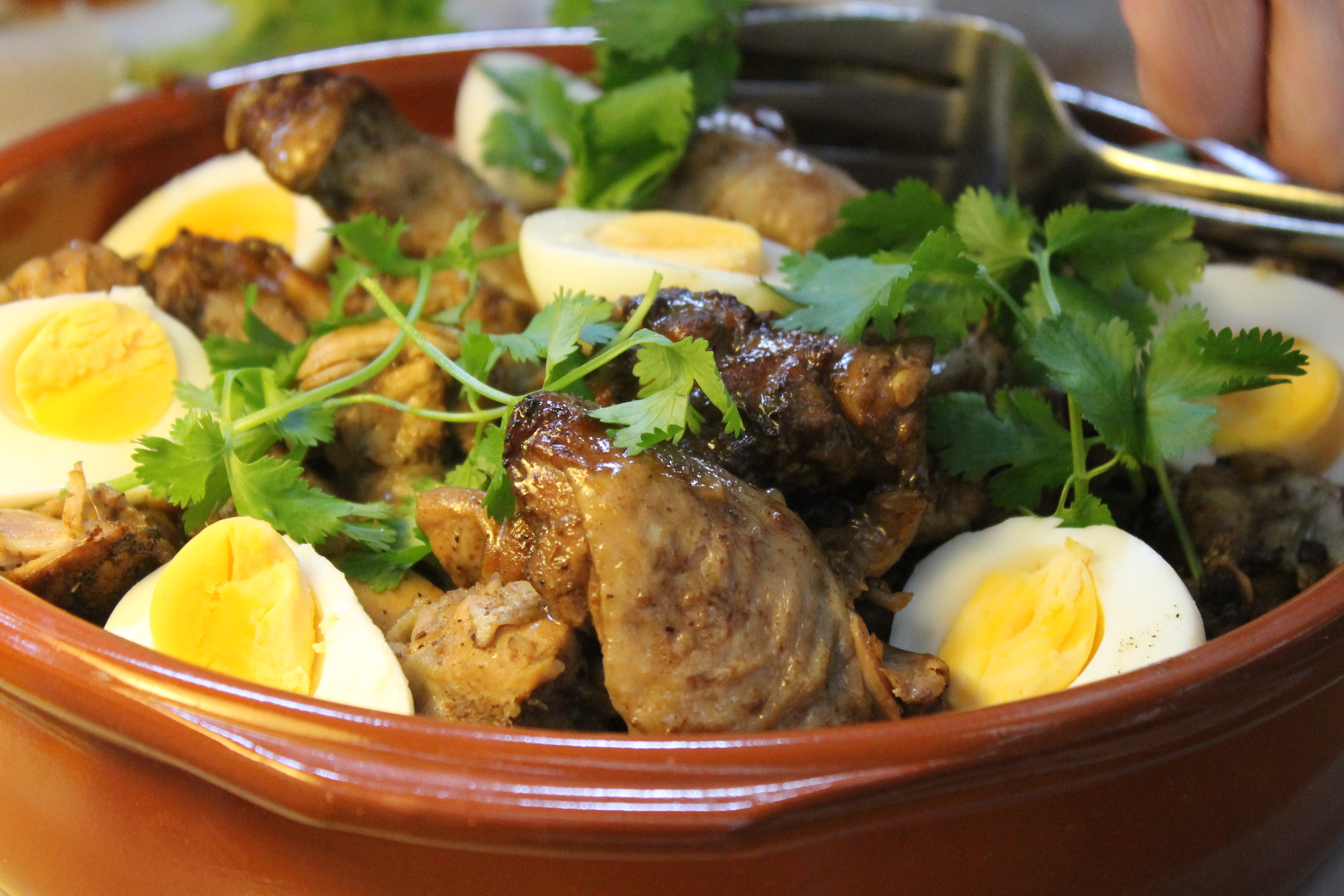 Og svo var komið með wat-kjúkling, höggvinn í bita og maukeldaðan, með harðsoðnum eggjum.