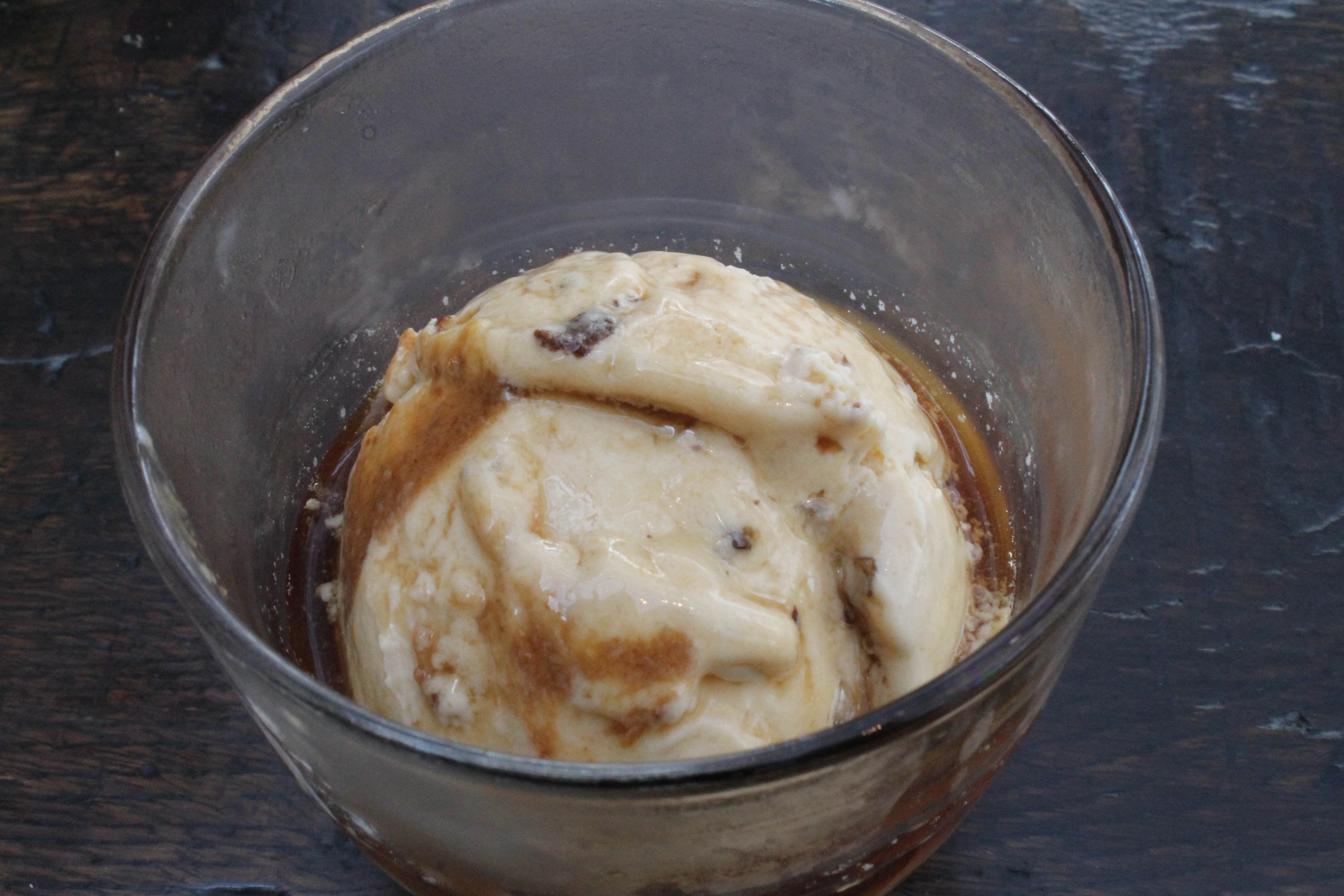 Þar sem ég var alls ekki að fara að gera neitt og það fór ákaflega vel um mig þarna í horninu á garðskálanum á Gee’s ákvað ég að fá mér eftirrétt og valdi sveskjuís með Pedro Ximénes. Ef þið kannist ekki við Pedro Ximénes-sérrí, þá er það dísætt og þykkt með miklu sveskju- og rúsínubragði og getur verið alveg einstaklega gott í smáum skömmtum. Þegar ég smakkaði það fyrst var það einhver algjör lúxus-útgáfa (þetta var í sérrísmökkunarferð til Jerez) og ég man að ég hugsaði ,,þessu mætti nú líkja við að vera kysst í fyrsta sinn“. En svo rifjaði ég upp fyrsta kossinn minn og hætti við samlíkinguna. Þetta Pedro Ximénes var nú ekki alveg í þeim klassa en það var ágætt. Og ég þarf að gera einhverjar sveskjuístilraunir á næstunni.
