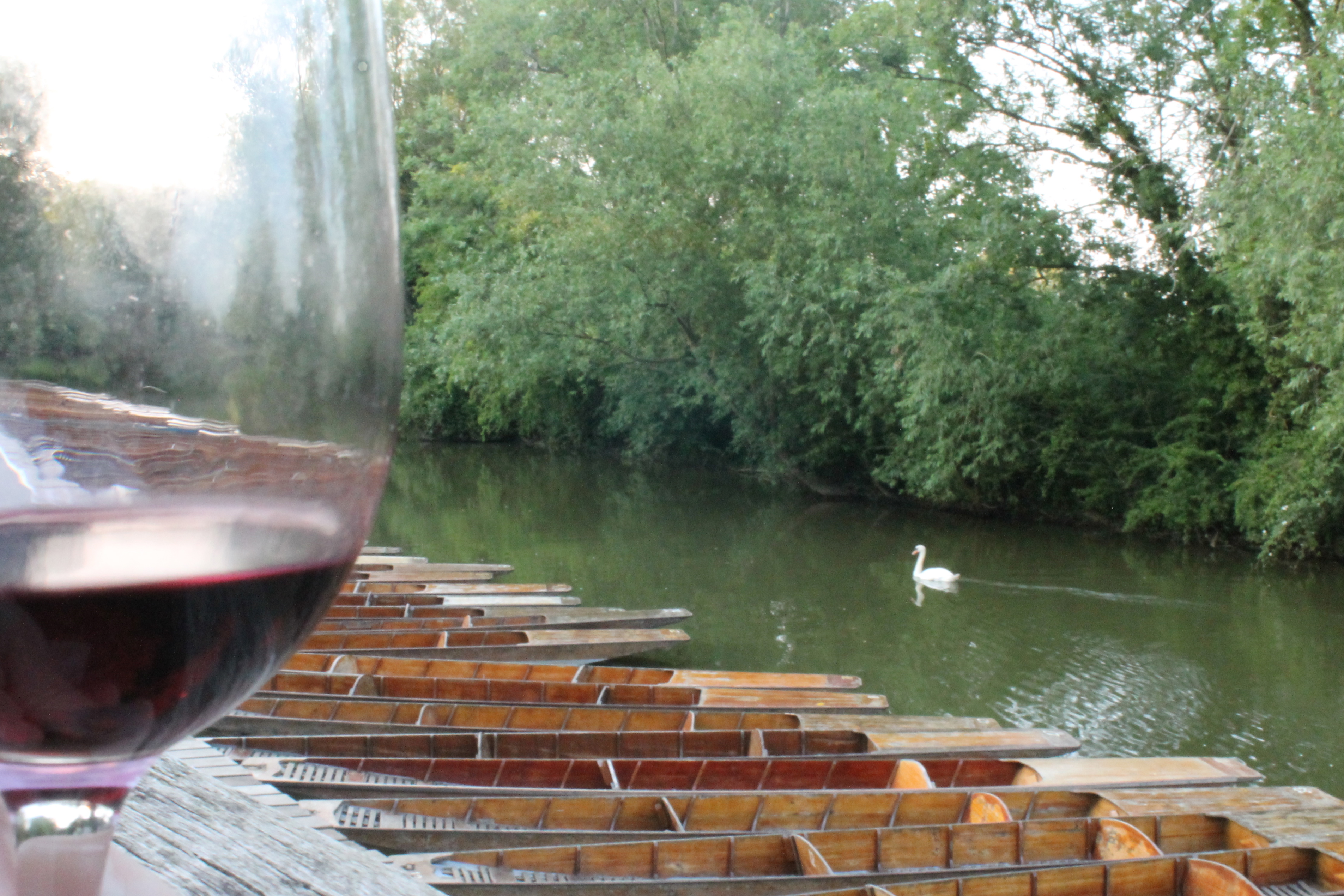 Ég átti svo pantað borð á Cherwell Boathouse um kvöldið og mér til ánægju reyndist það vera nákvæmlega borðið sem ég hafði óskað mér – á svölum neðan við útipall veitingahússins, alveg á árbakkanum ofan við bátaleiguna. Varla hægt að ímynda sér meiri enska sveitarómantík á svona sumarkvöldi.