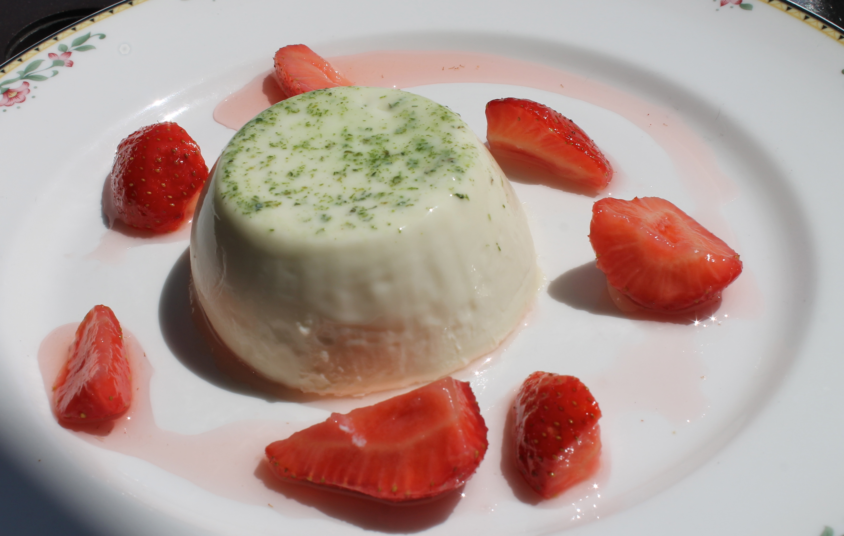 Ég hafði pantað eftirrétt – estragon-panna cotta með jarðarberjum – en þar sem ég var svo södd var ég mjög sátt við að hann kom ekki strax, heldur sat bara og naut sólarinnar og virti fyrir mér aðra gesti (og matinn þeirra, sem virtist yfirleitt ansi álitlegur). En svo leið og beið og þegar ég loksins spurði hvort eftirrétturinn færi ekki að koma kom upp úr dúrnum að hann hafði gleymst … En hann var góður þegar hann kom. Og ég var hvort eð var bara að drepa tímann þar til ég þyrfti að sækja töskuna og taka rútuna á Heathrow.