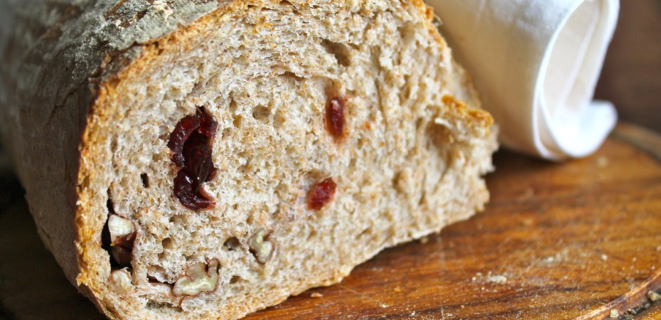 Nei, það rann þvert á móti upp fyrir mér að ég þyrfti að kolvetnajafna til að vega upp á móti þessu. Svo að ég ákvað að baka brauð. Ég hafði verið að lesa þetta bráðskemmtilega blogg (níu ára sonur matarrýnisins Jay Rayner að gera tilraunir í brauðbakstri með móður sinni, móðirin skrásetur árangurinn) og líklega kveikti það hugmyndina: mig langaði í pekanhnetu- og trönuberjabrauð.