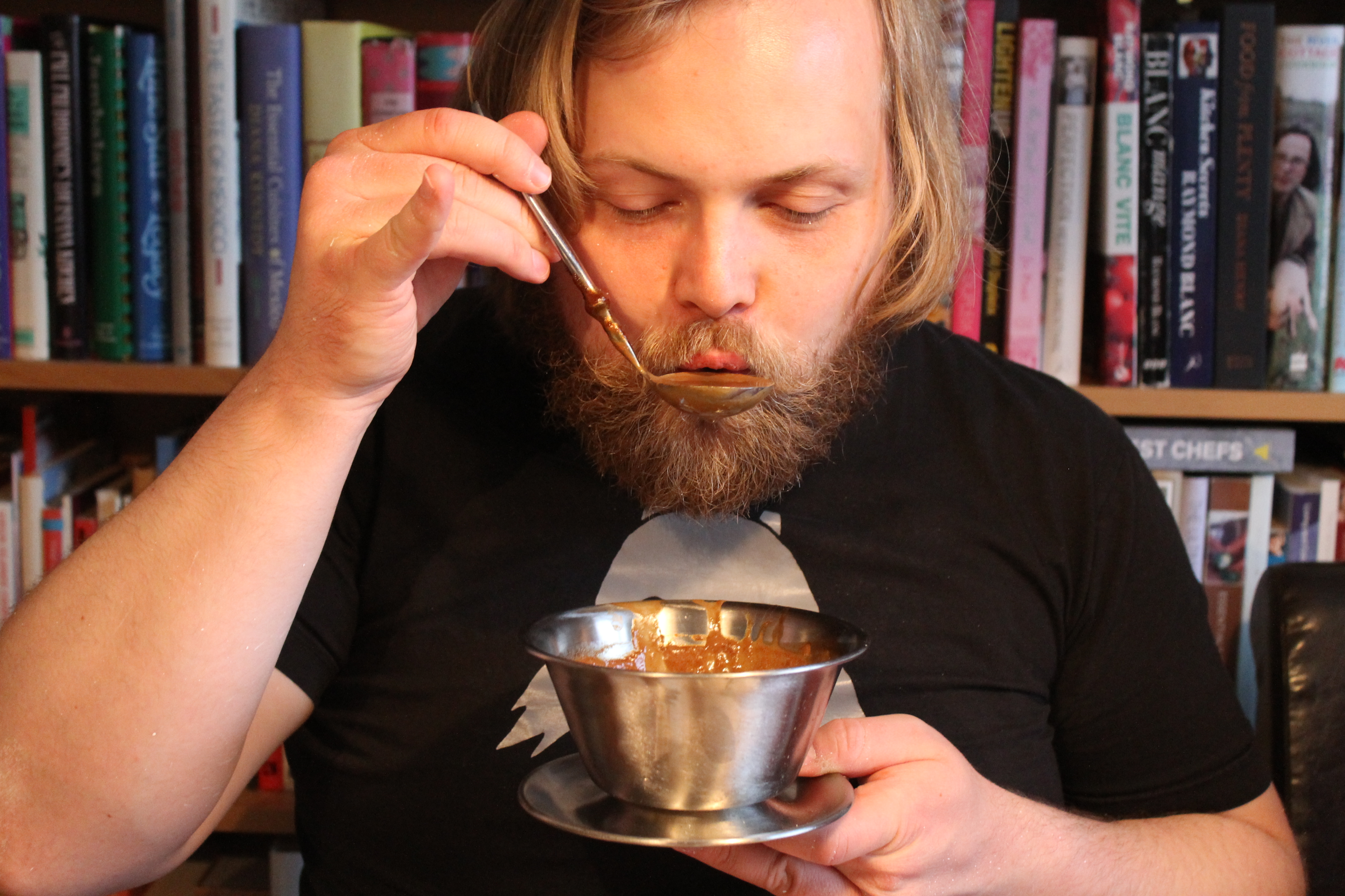 Þetta þótti honum syni mínum góð sósa eins og sjá má og hann lagði hald á leifarnar af henni.
