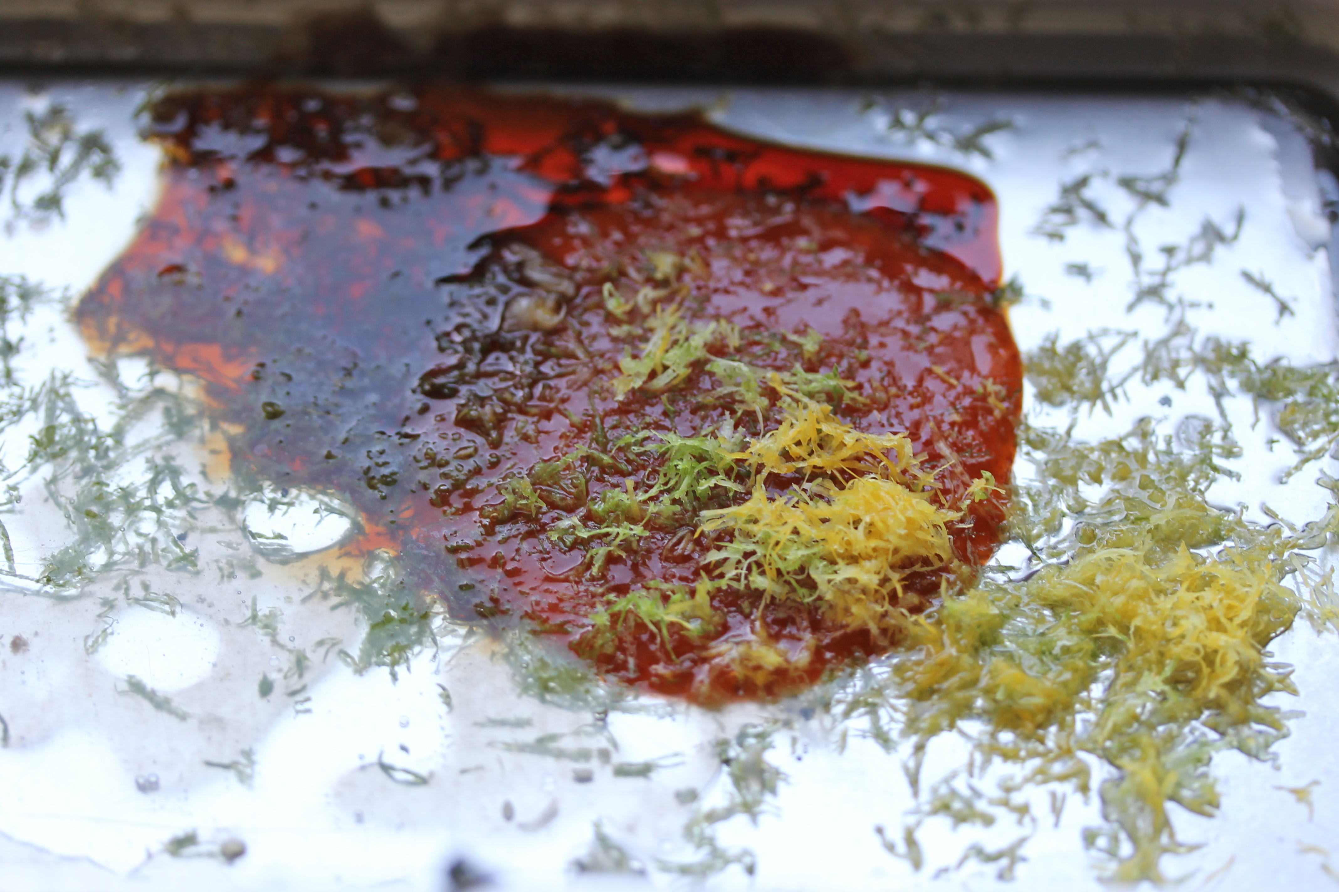 Ég byrjaði á að búa til maríneringu: 2 msk af mildri chilisósu, 1 msk sojasósa, 2 msk olía, rifinn börkur og safi úr hálfri sítrónu, pipar og salt. Hrærði þetta saman.