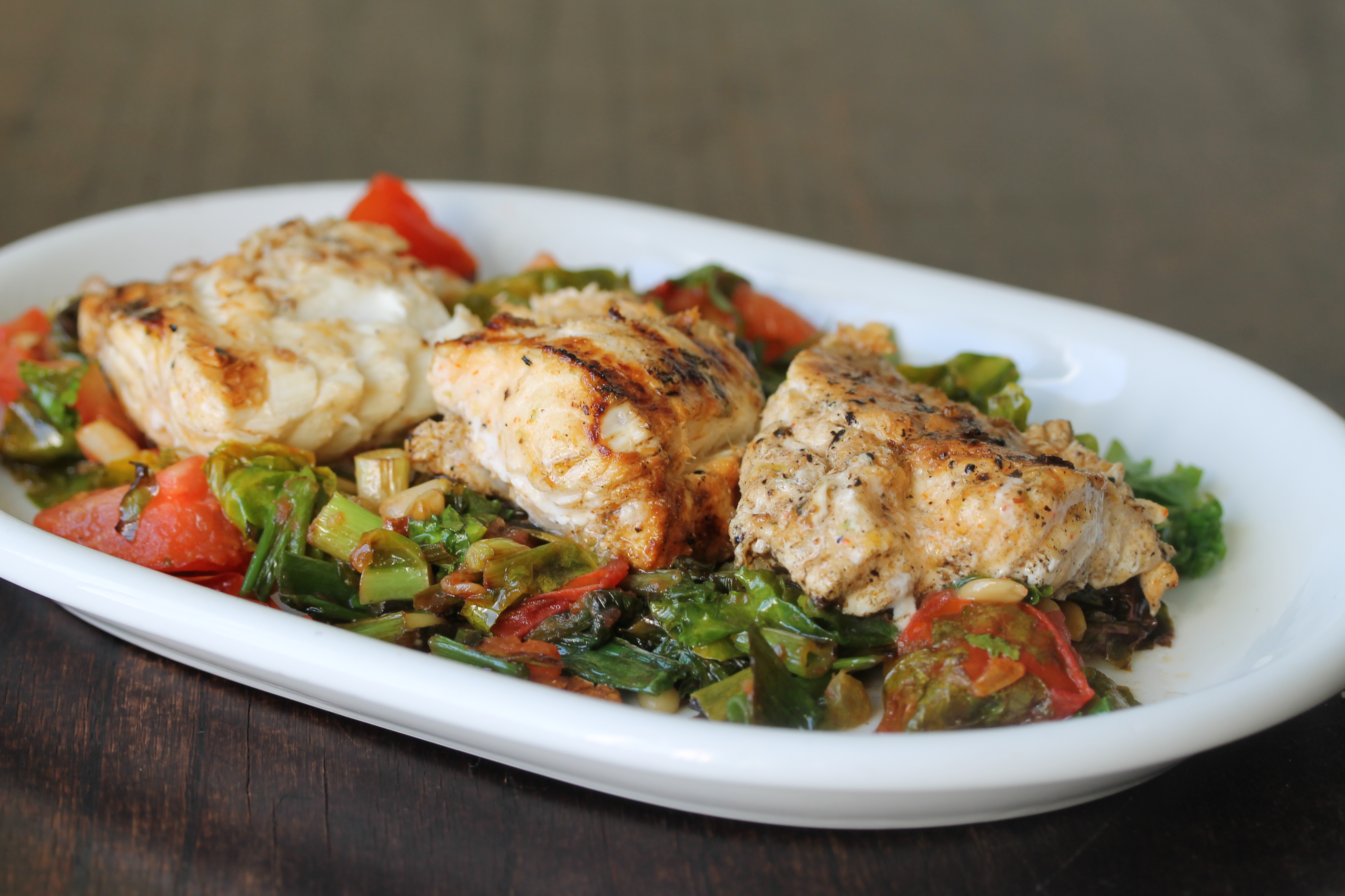 Ég setti svo grænkálsblönduna á fat og fiskinn ofan á og bar fram.