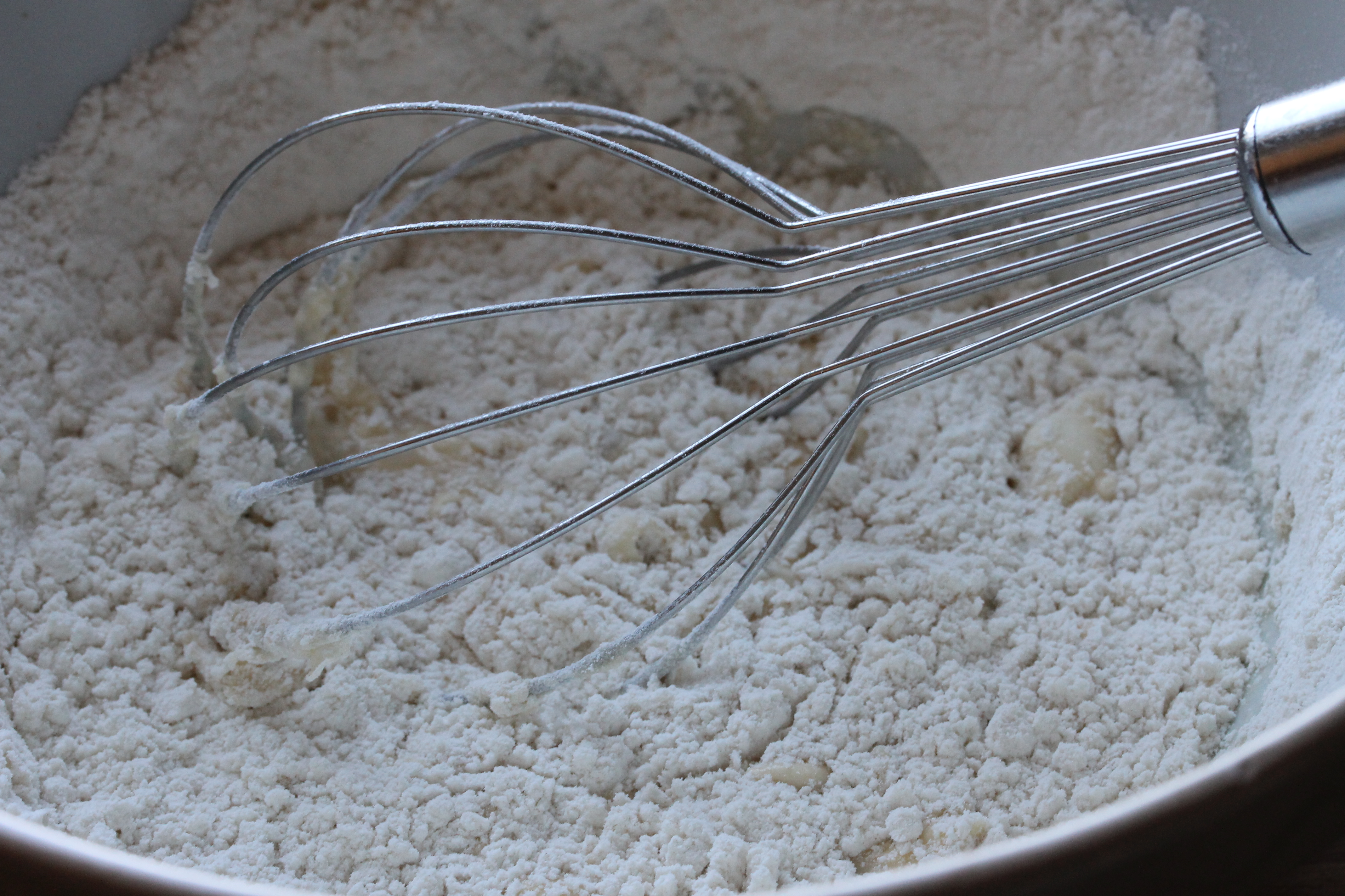 Á þessu stigi eru bragðefni sett út í ef þau eru notuð, sem þarf svosem ekki. Ég ætlaði að gera bæði sætar og ósætar skonsur og notaði svolítinn fínrifinn sítrónubörk í helminginn af deiginu en hálfa teskeið af vanilluessens í hinn helminginn. En þegar ég gerði skonsurnar aftur daginn eftir (fyrir afmælið hennar Gurríar) setti ég nokkur söxuð basilíkublöð og nýmalaðan svartan pipar út í deigið, það kom sérlega vel út.