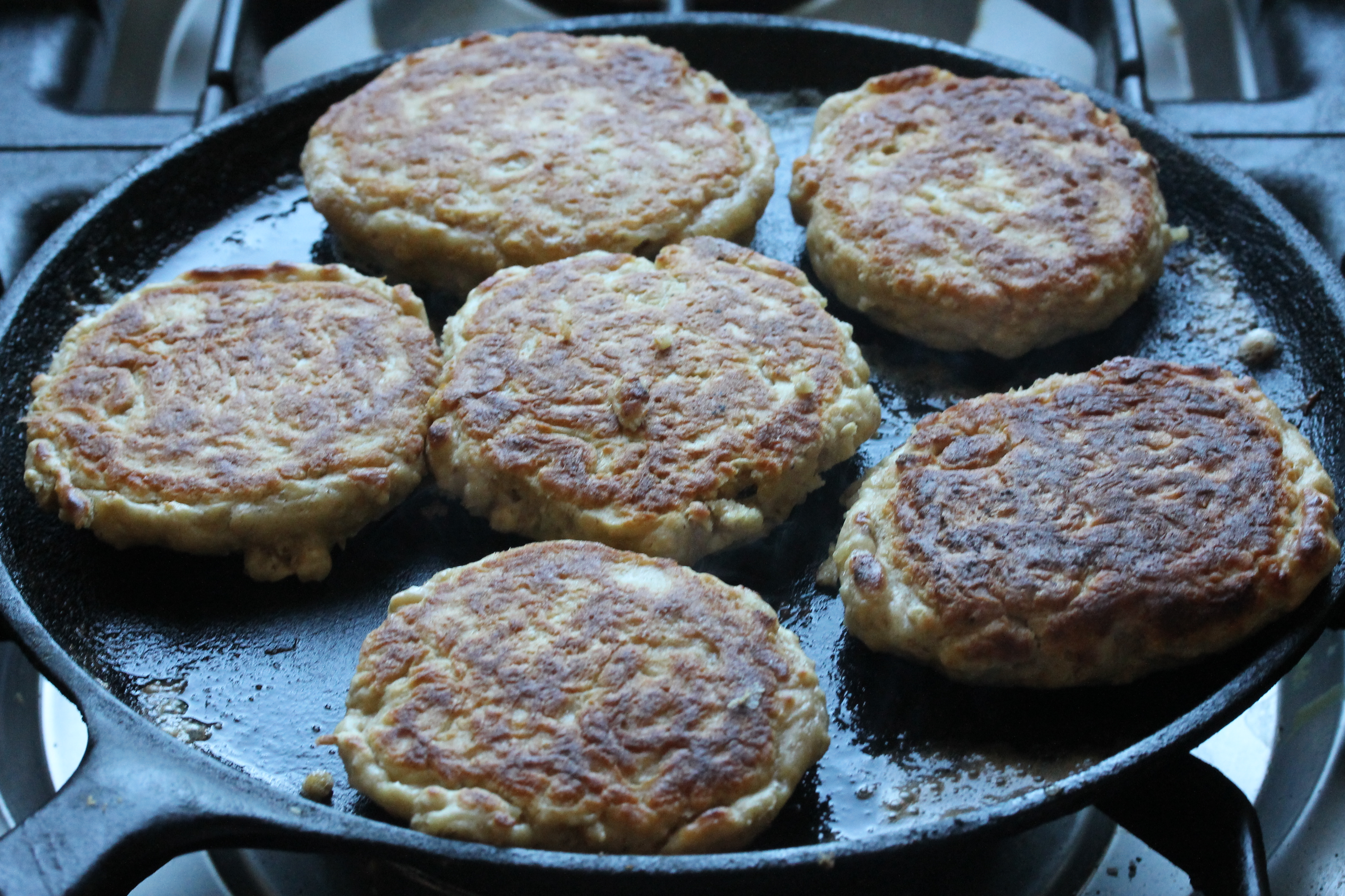 Þá bætti ég smjöri á pönnuna og sneri þeim. Steikti þær í svona tvær mínútur á hinni hliðinni og tók þær svo af pönnunni og lét kólna.