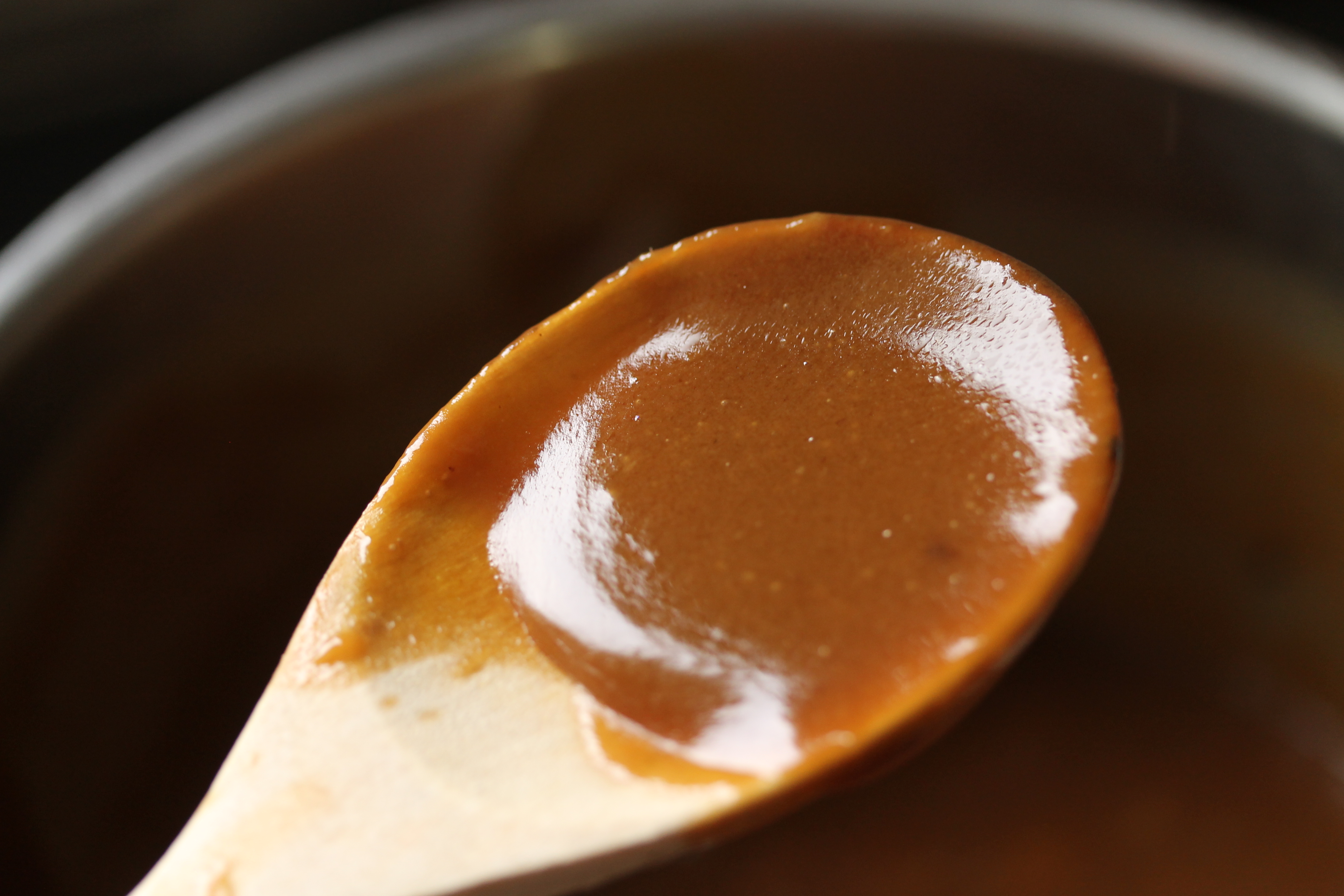 … Þar til komin var þykk, fallega gullinbrún karamellusósa. Þá tók ég hana af hitanum og lét hana kólna aðeins.