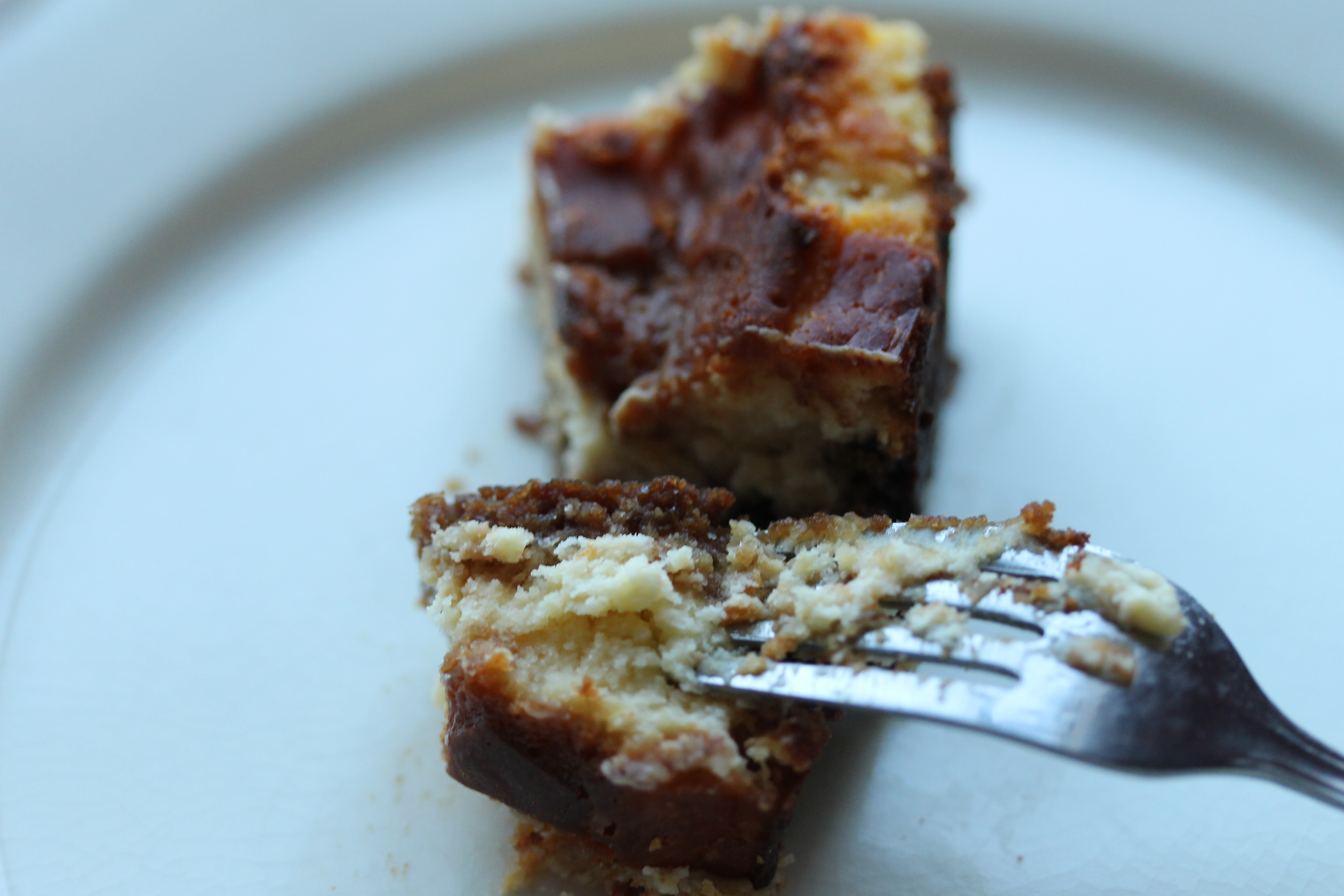 Ég bakaði kökuna við 160°C í 45-50 mínútur, slökkti svo á ofninum og lét hana kólna í klukkutíma. – Eftir á að hyggja hefði e.t.v. verið betra að hafa hitann aðeins lægri, 150°C eða svo, og baka kökuna í klukkutíma; ég hugsaði ekki út í að ég var bæði með botn úr dökku, sætu kexi og svo var formið svart og þetta varð til þess að botninn dökknaði heldur meira en ég vildi (en brann þó ekki).