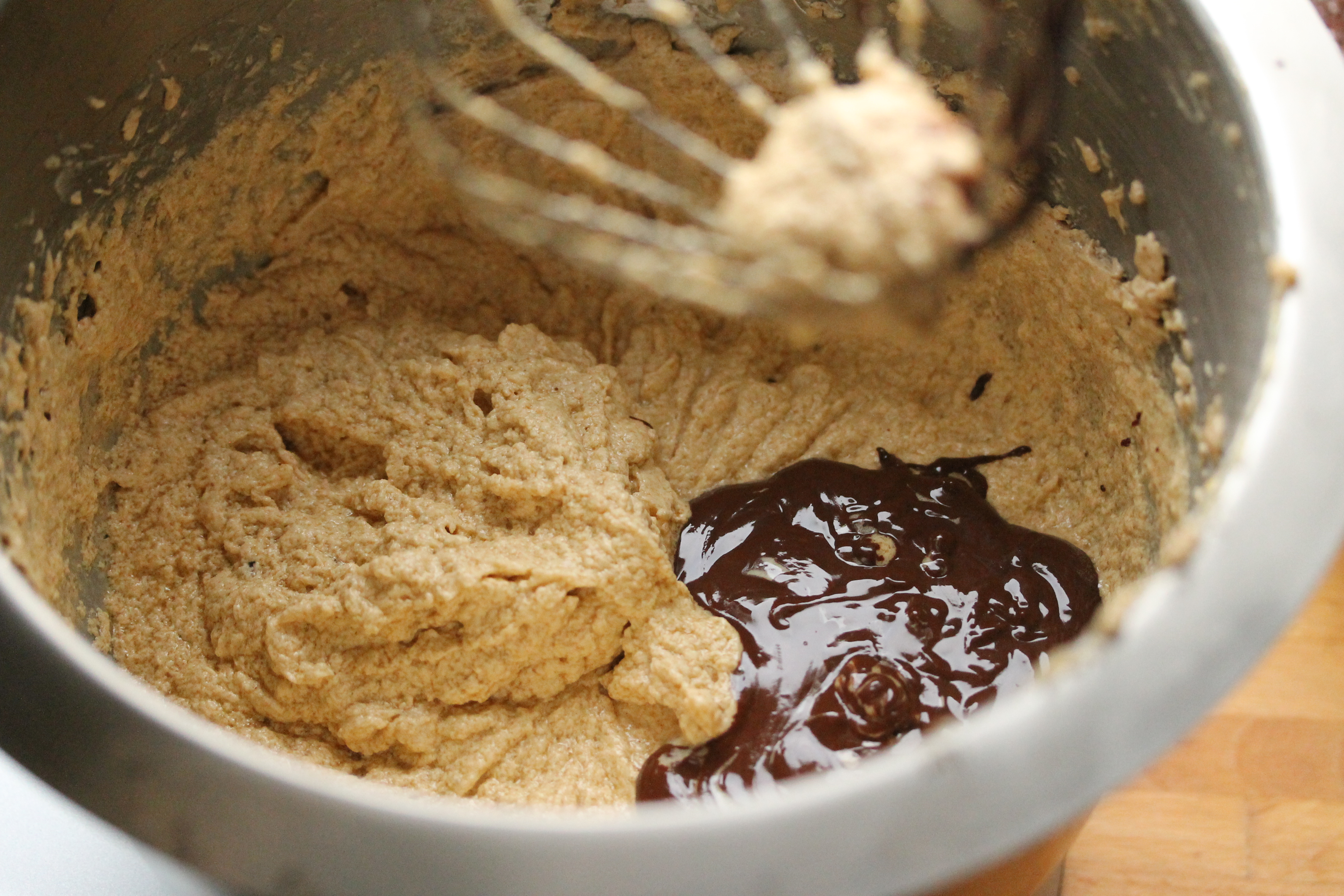 Síðan setti ég súkkulaðið út í og hrærði því saman við.
