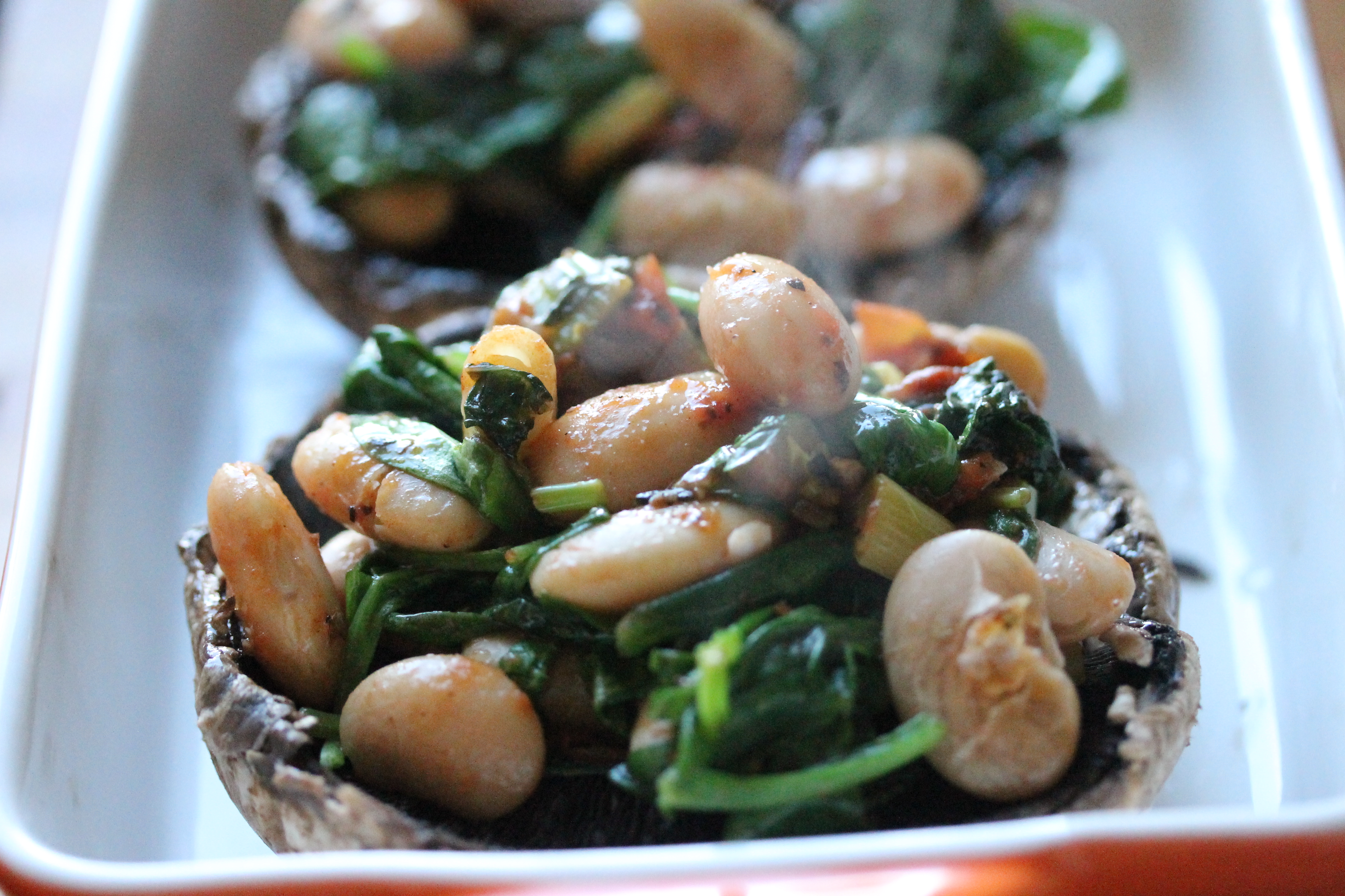 Ég hef reyndar áður verið með uppskrift – eða líklega uppskriftir – að fylltum portobellosveppum því mér þykja þeir góðir og það er frekar þægilegt að elda þá – þeir henta til dæmis mjög vel sem máltíð fyrir einn (eða tvo). Þeir eru kjötmiklir og þéttir, stórir og flatir og henta vel til fyllingar og það er hægt að nota næstum hvað sem er í hana – alls konar grænmeti, kjötafganga, kjúkling, fisk, baunir, soðin hrísgrjón, bygg og margt annað og krydda með margvíslegu kryddi og kryddjurtum.