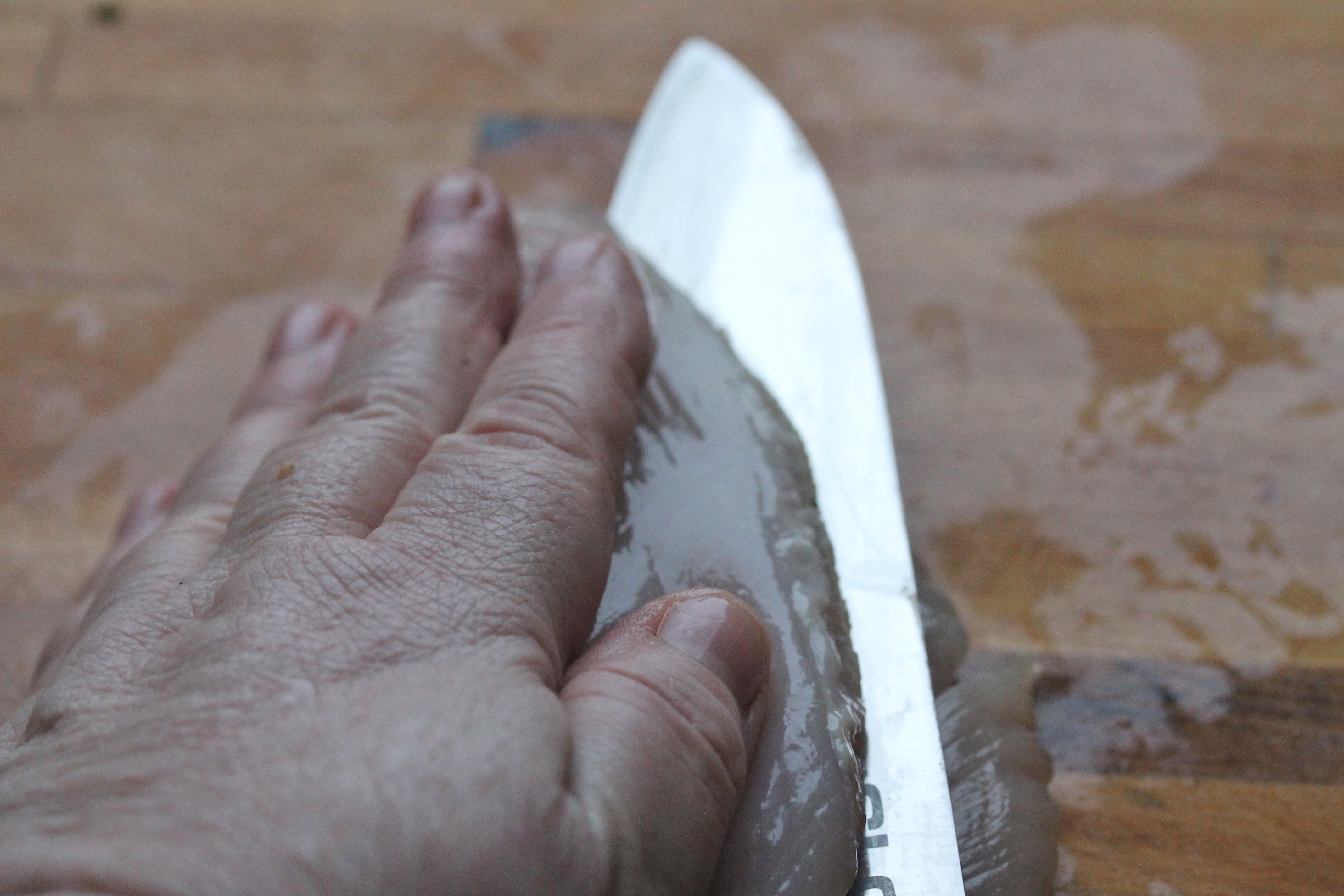Bringan sem ég átti var reyndar óvenju stór og þykk en það var ekki þess vegna sem ég klauf hana í tvennt, það hafði ég líka gert við bringurnar í bókinni þótt þær væru meðalstórar eða líklega aðeins minni en það. Ég setti bringuna semsagt á bretti, lagði lófann ofan á og skar hana í tvennt með beittum hníf.