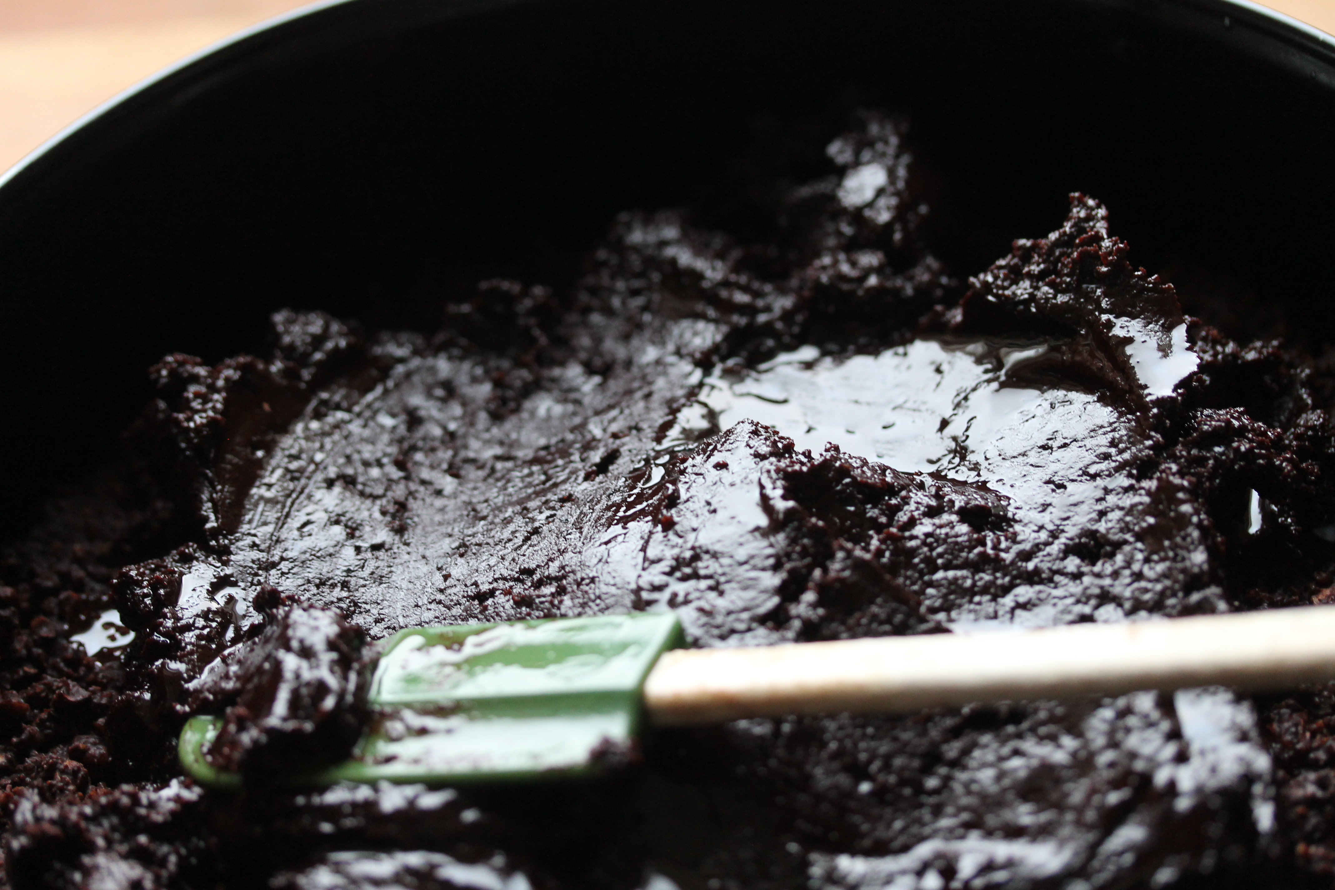 Í kremið notaði ég semsagt 425 g af döðlum (mjúkum, með steini), 125 g af palmíni, 100 g af kakódufti, 1 tsk af vanilluessens og 1/2 tsk af salti (flögusalti, Saltverk). Eins og ég sagði áður má vitaskuld nota kókosolíu í staðinn fyrir palmín.