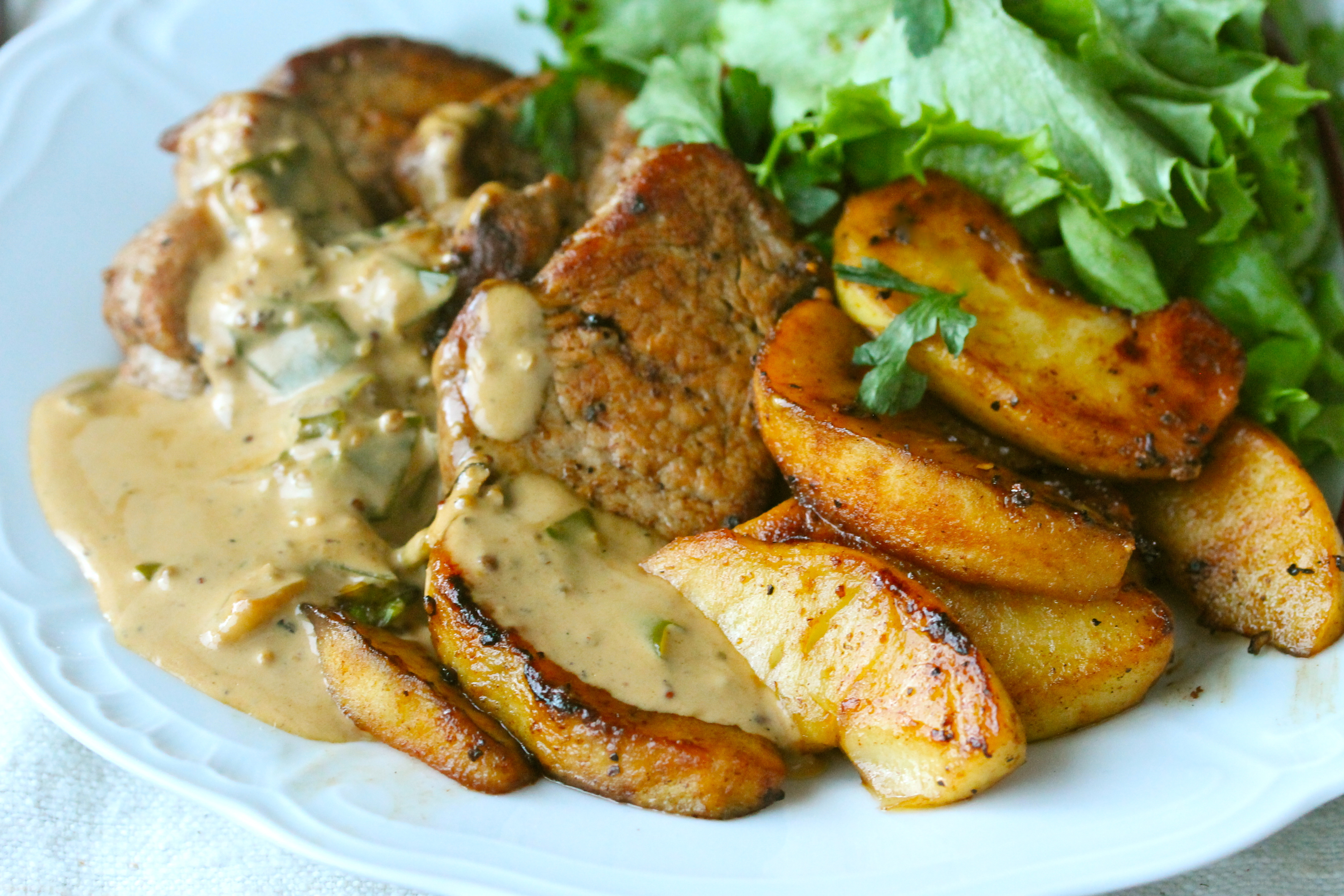 Grísalund með eplum í sinnepsrjómasósu