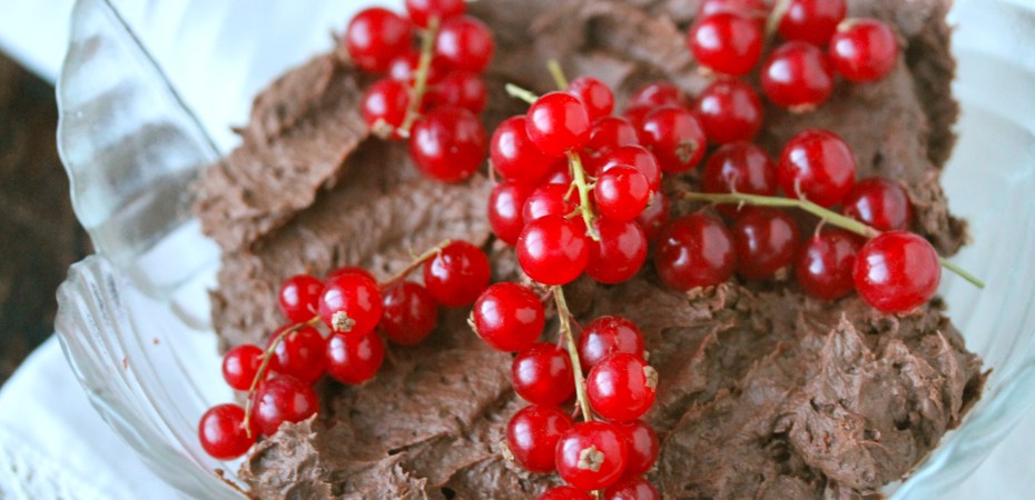 Svo smakkaði ég á búðingnum og komst að þeirri niðurstöðu að þetta væri nú bara það gott að við þessi sem erum ekki að forðast sykur algjörlega gætum nú bara vel verið sátt við þetta og ég þyrfti hreint ekki að gera annan eftirrétt fyrir okkur. Svo að ég setti búðinginn bara í skál og skreytti með berjum. Ég setti hann ekki í kæli þar sem aðeins voru fáeinir klukkutímar þar til hann yrði borðaður og ég vissi að hann yrði mjög stífur í kæli. Hann þarf heldur ekkert að bíða, hægt að borða hann strax, en versnaði sannarlega ekki við biðina.