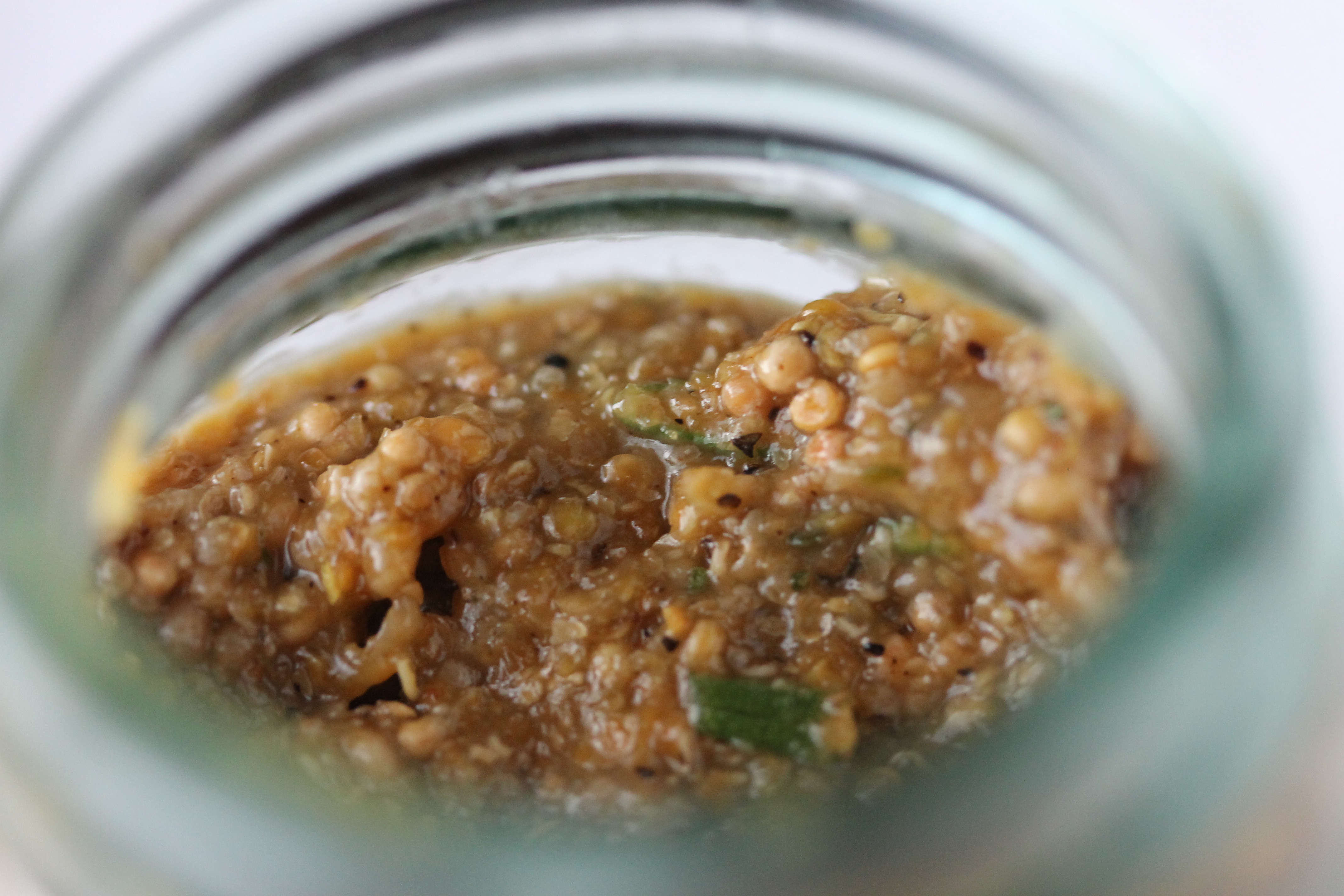 Ég vissi þegar ég horfði á þetta að það vantaði eitthvað … en það var ekki fyrr en ég var byrjuð sem það rann upp fyrir mér að ég hafði notað edik, sem er oftast í heimagerðu sinnepi (þó ekki alltaf). Svo ég náði í eplaediksflöskuna og notaði 2 msk úr henni.