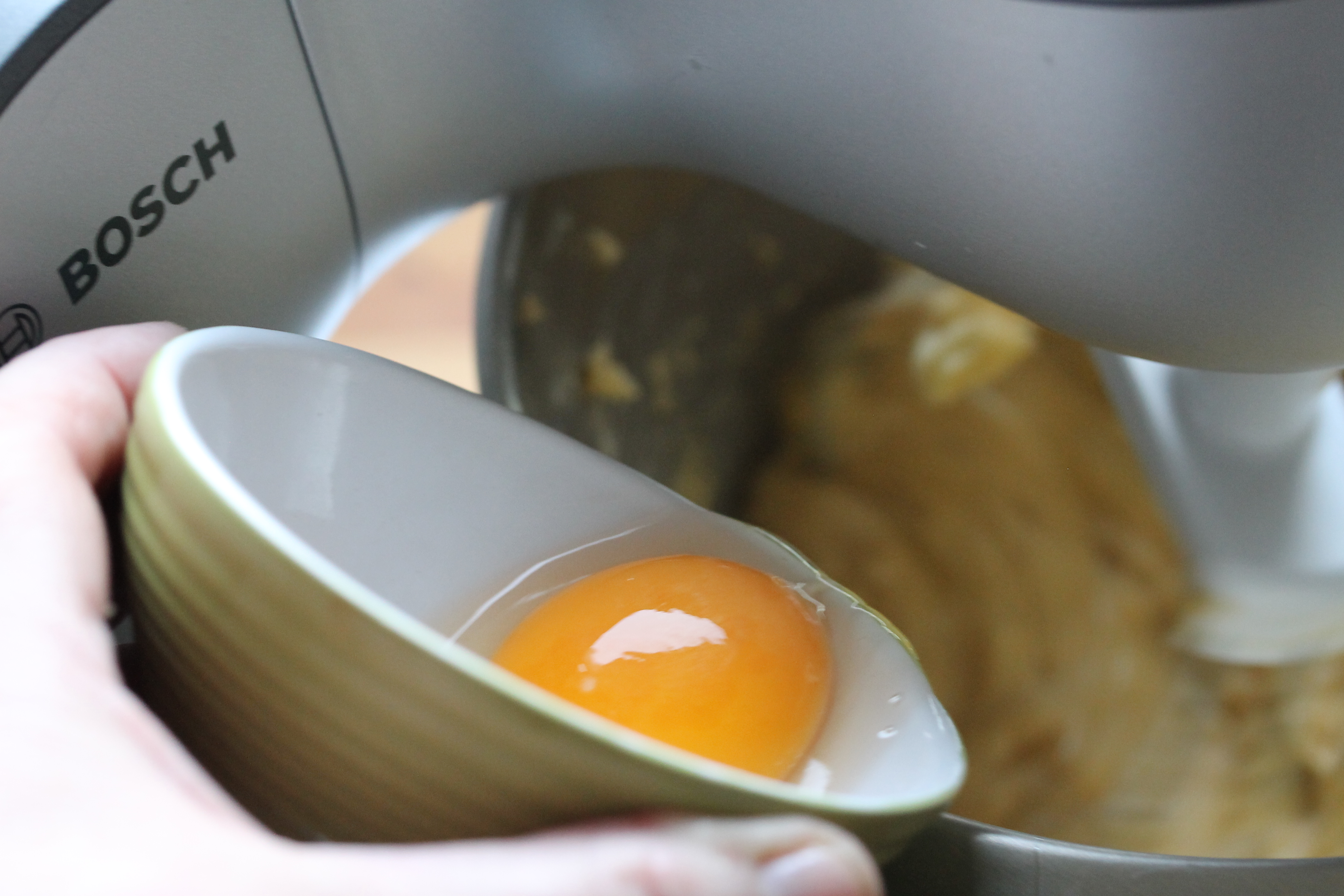 Svo tók ég 4 egg og hrærði þeim saman við, einu í einu, áasmt 1 tsk af vanilluessens.