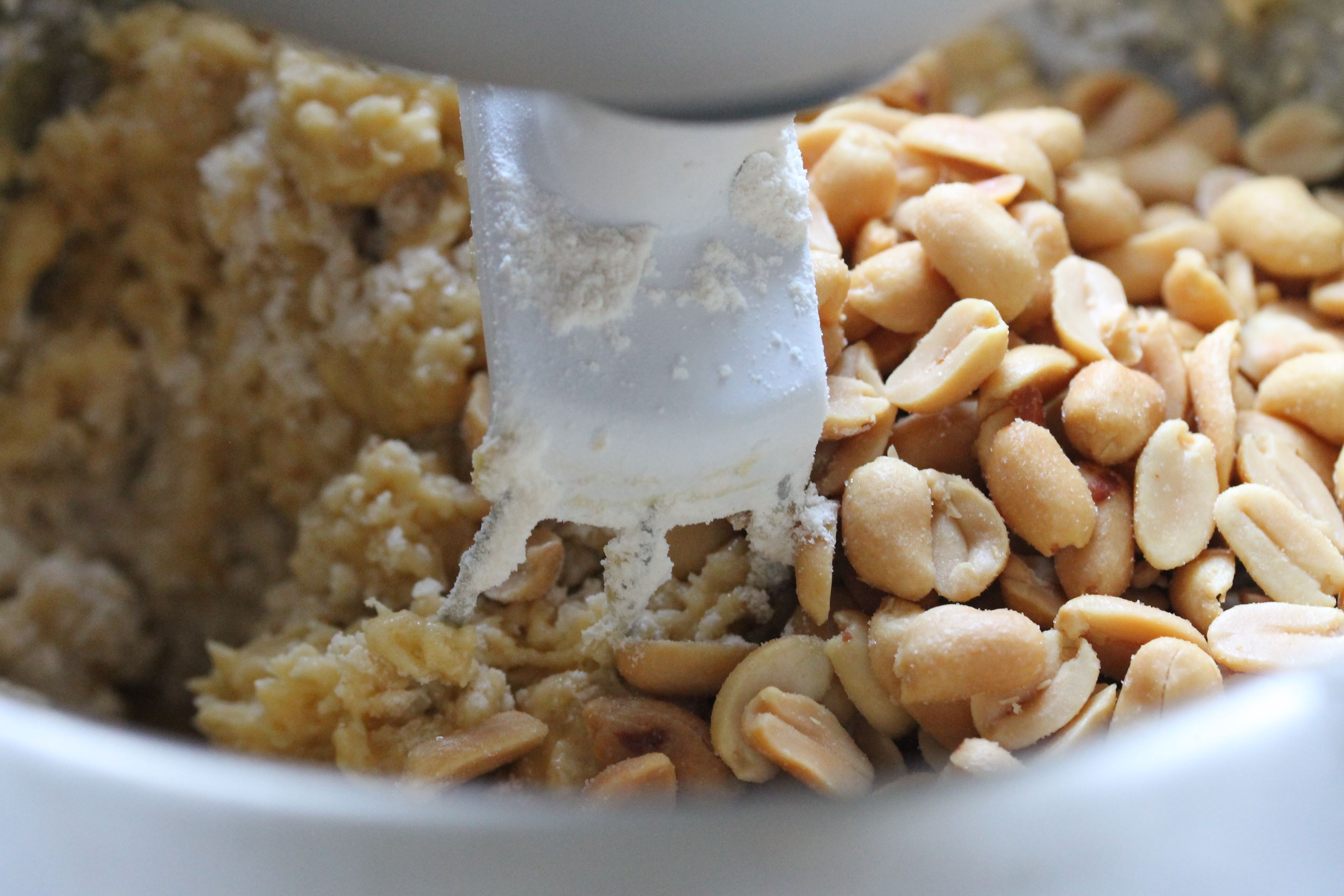 Svo tók ég 200 g af salthnetum, tók 3-4 matskeiðar frá en blandaði hinu saman við deigið (notaði reyndar ekki hrærarann tl þess, heldur blandaði þessu með sleikju.