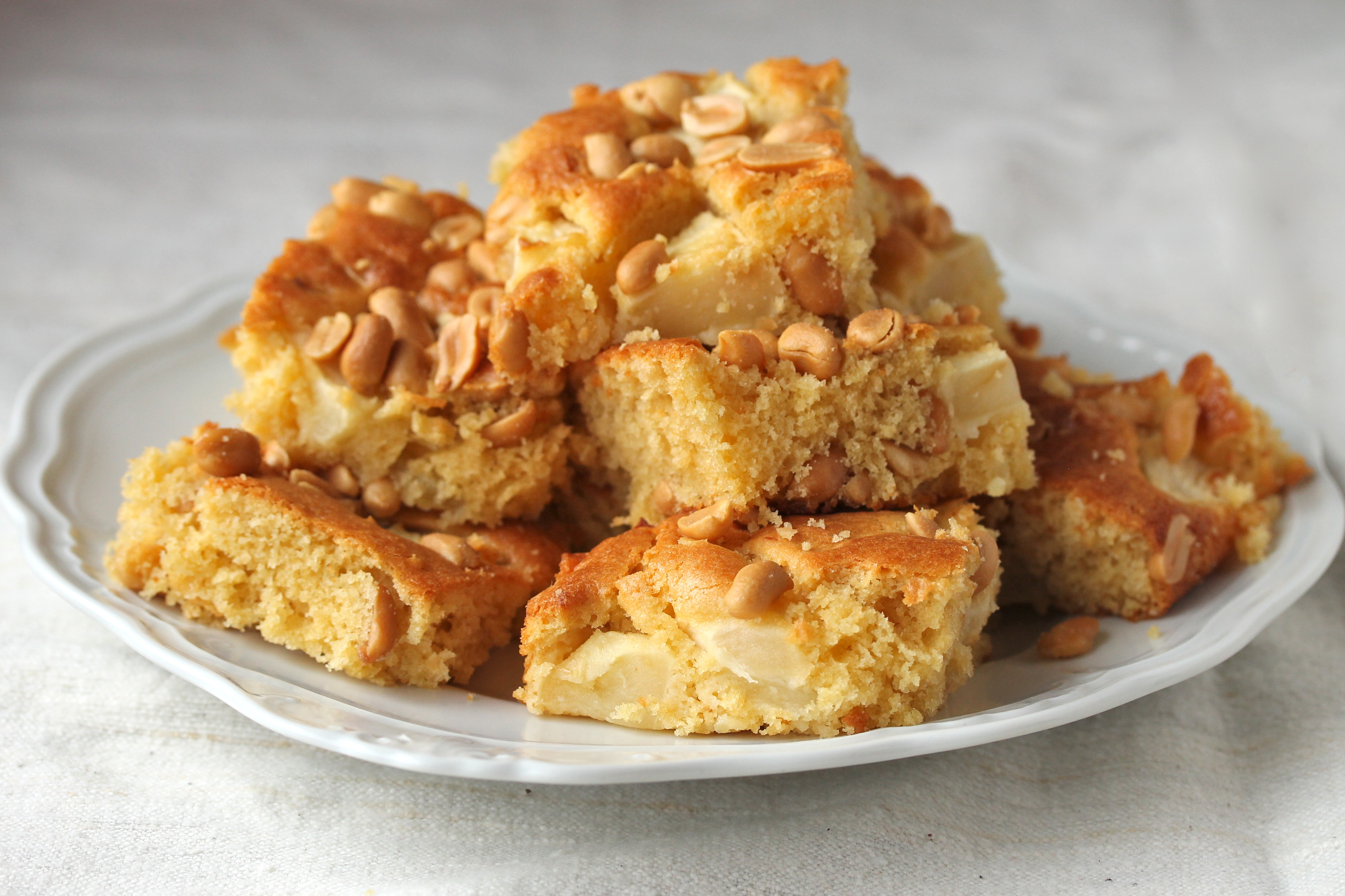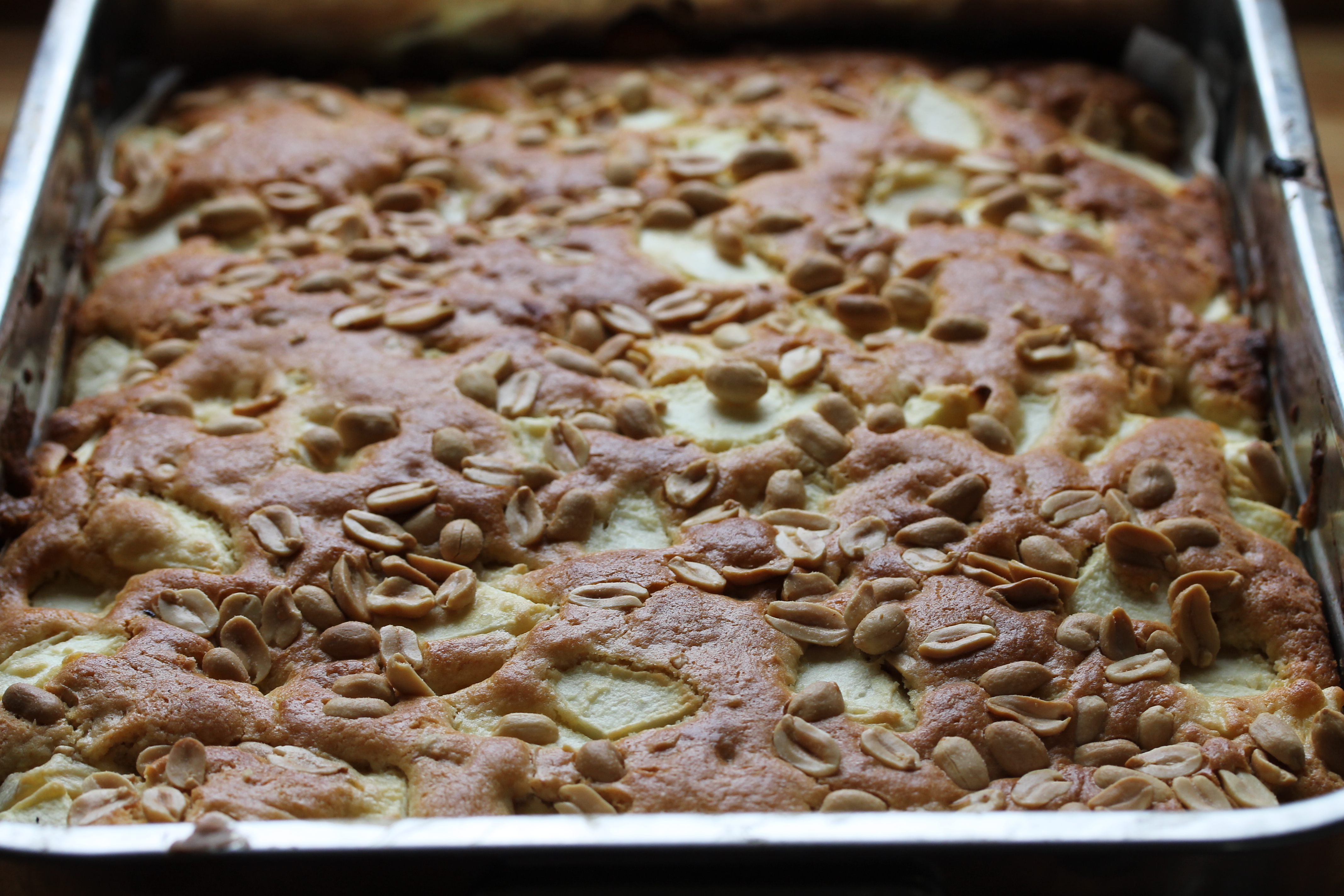 En þetta er nú engin af þeim uppskriftum þótt þetta sé kökuuppskrift, engin íslensk klassík sko. Bara alveg ágæt eplakaka með salthnetum. Ég bakaði hana í haust fyrir MAN og fór svo með hana í vinnuna eins og ég geri nú gjarna og man ekki betur en hún hafi fallið alveg ágætlega í kramið þar.