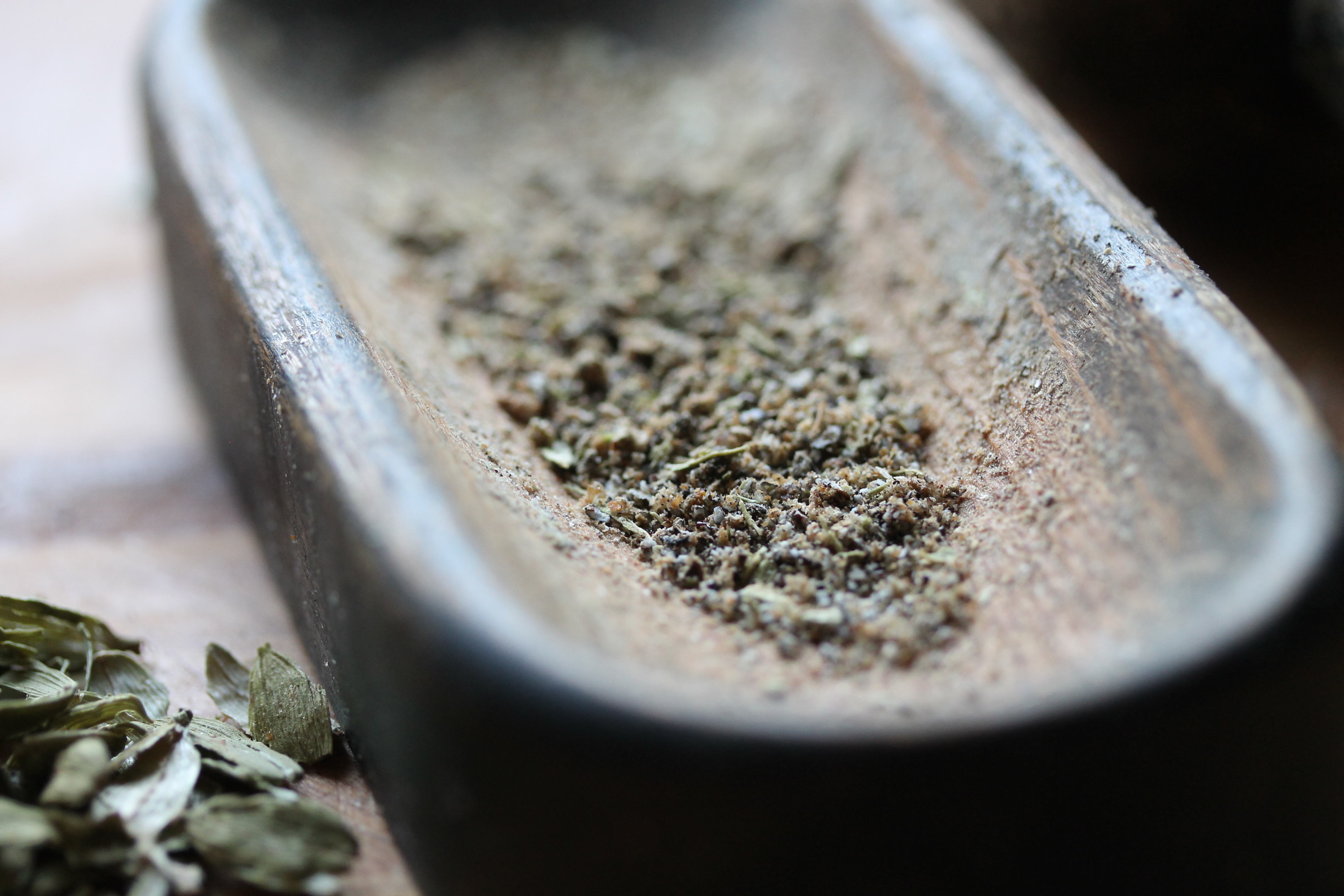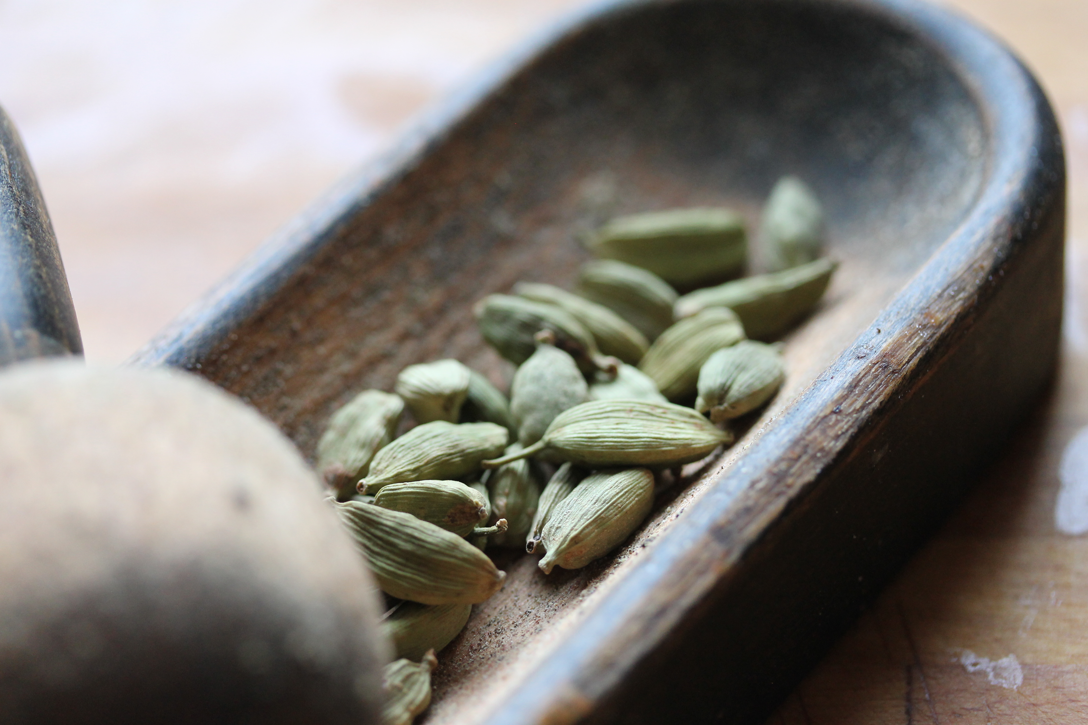 Ég byrjaði þess vegna á að steyta heilar kardimommur – svona eina matskeið, úr því kom sirka teskeið af kardimommudufti.