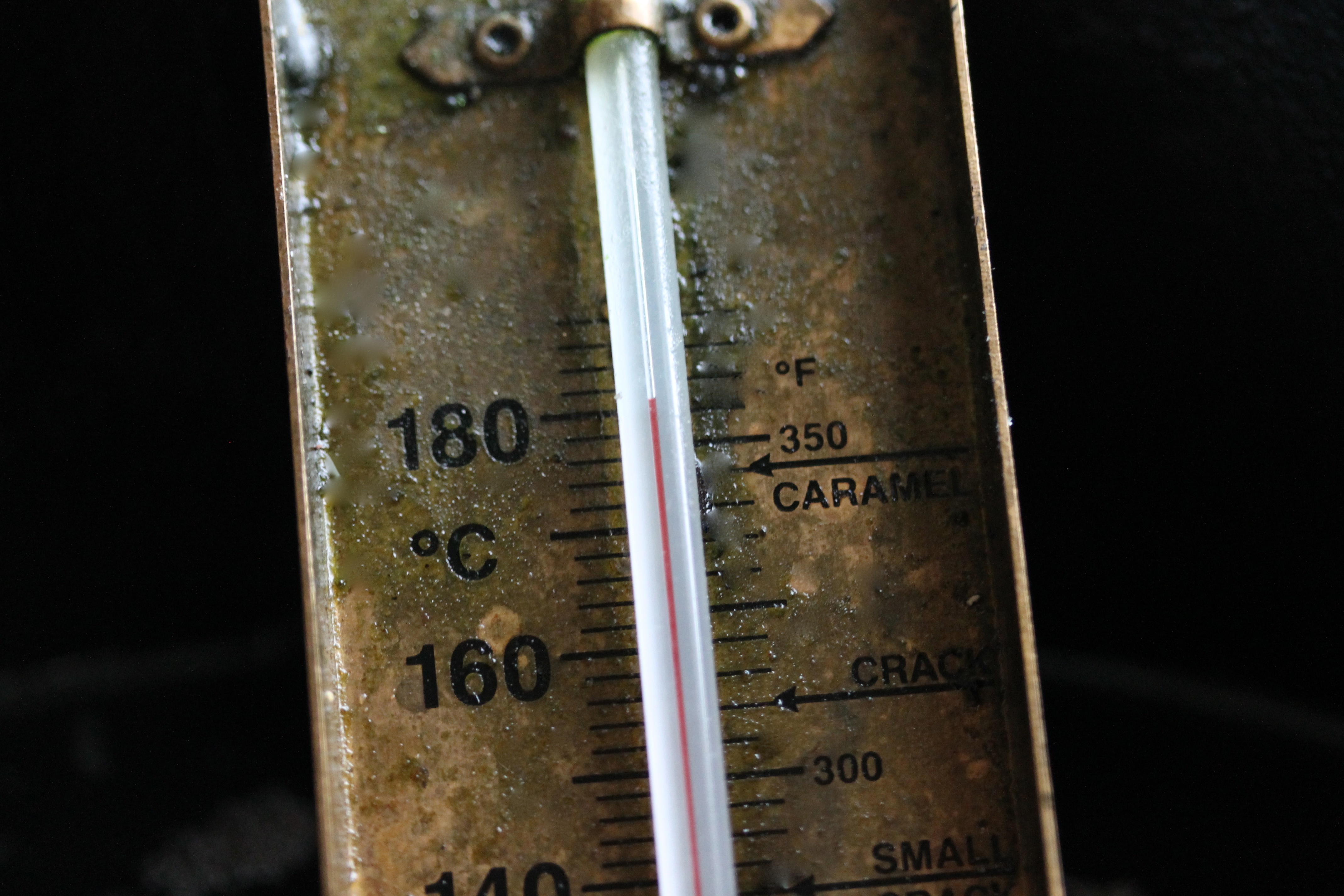 200°C getur alveg verið í lagi ef kleinurnar eru ekki mjög þykkar og ná að steikjast í gegn áður en þær verða of dökkar. En 190°C væri kannski best.